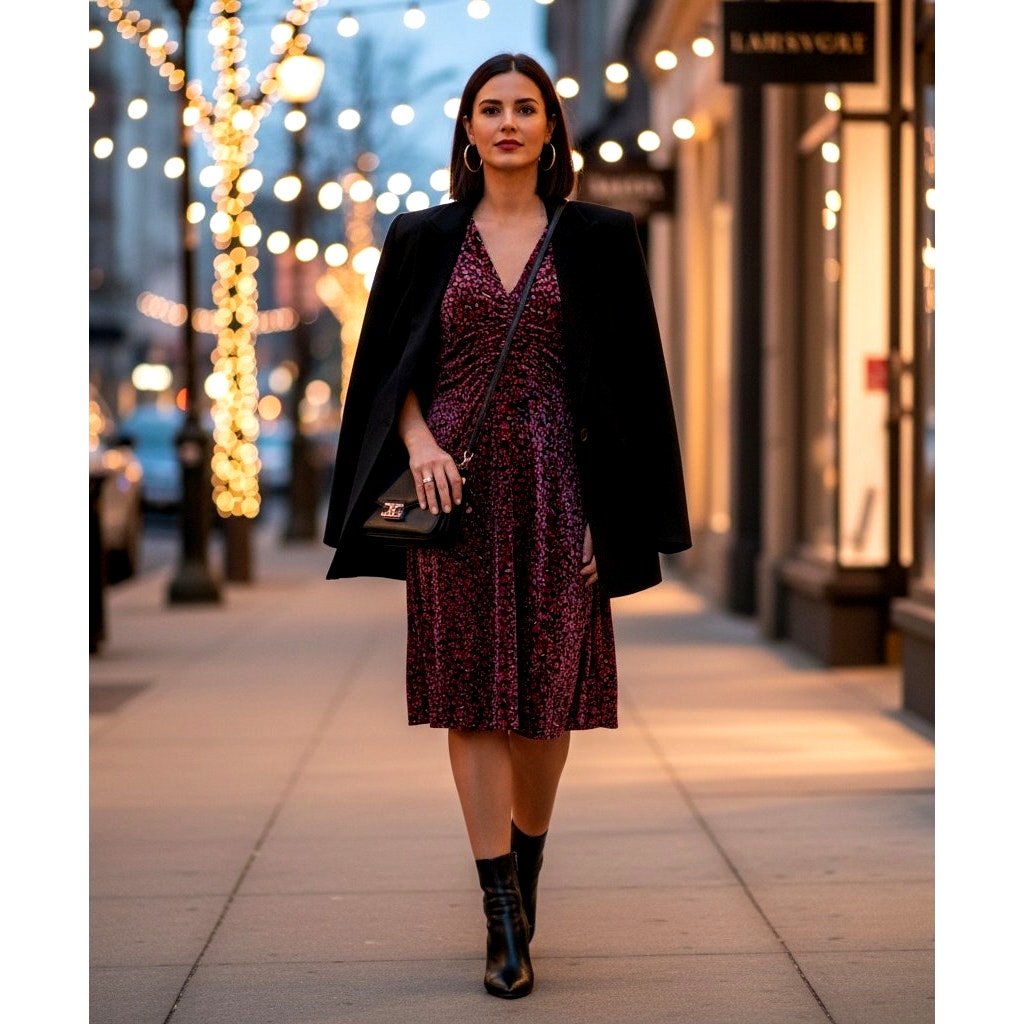 🌹 Holiday Glam: Pair with heeled ankle boots, gold jewelry, and a sleek clutch for festive elegance.