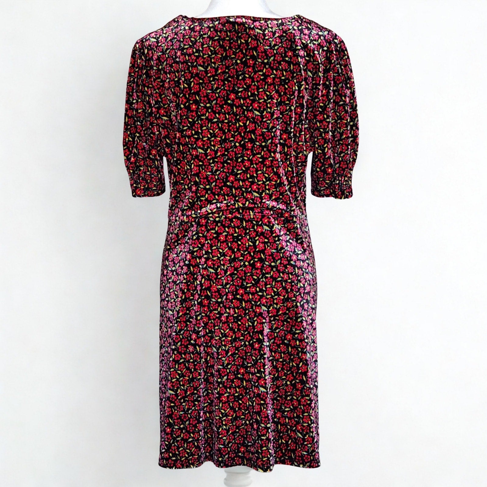 ✨ TOPSHOP “Bizzy Lizzy” Red Velvet Floral Puff Sleeve Tea Dress | Size 12 ✨