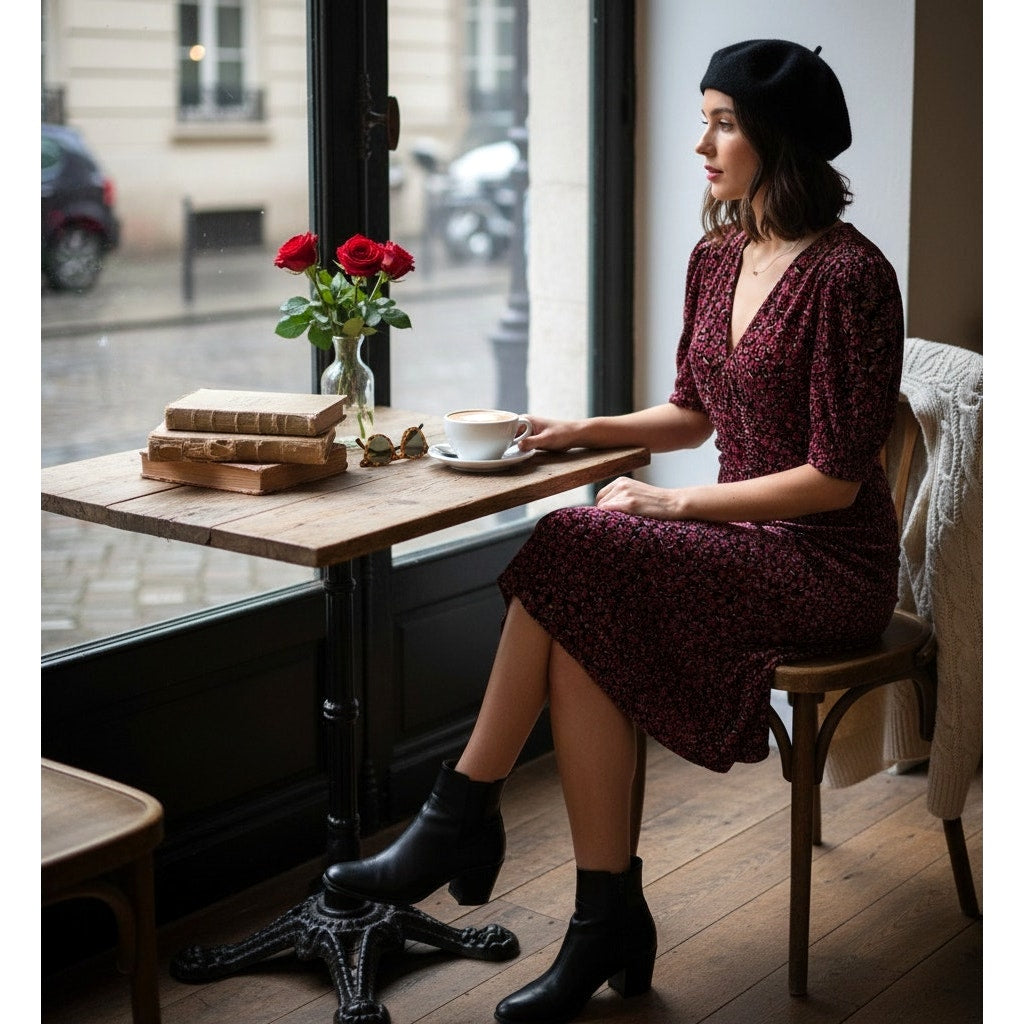 ☕ Vintage Café Vibe: Add tights, Mary Janes, and a cozy cardigan for daytime charm.
