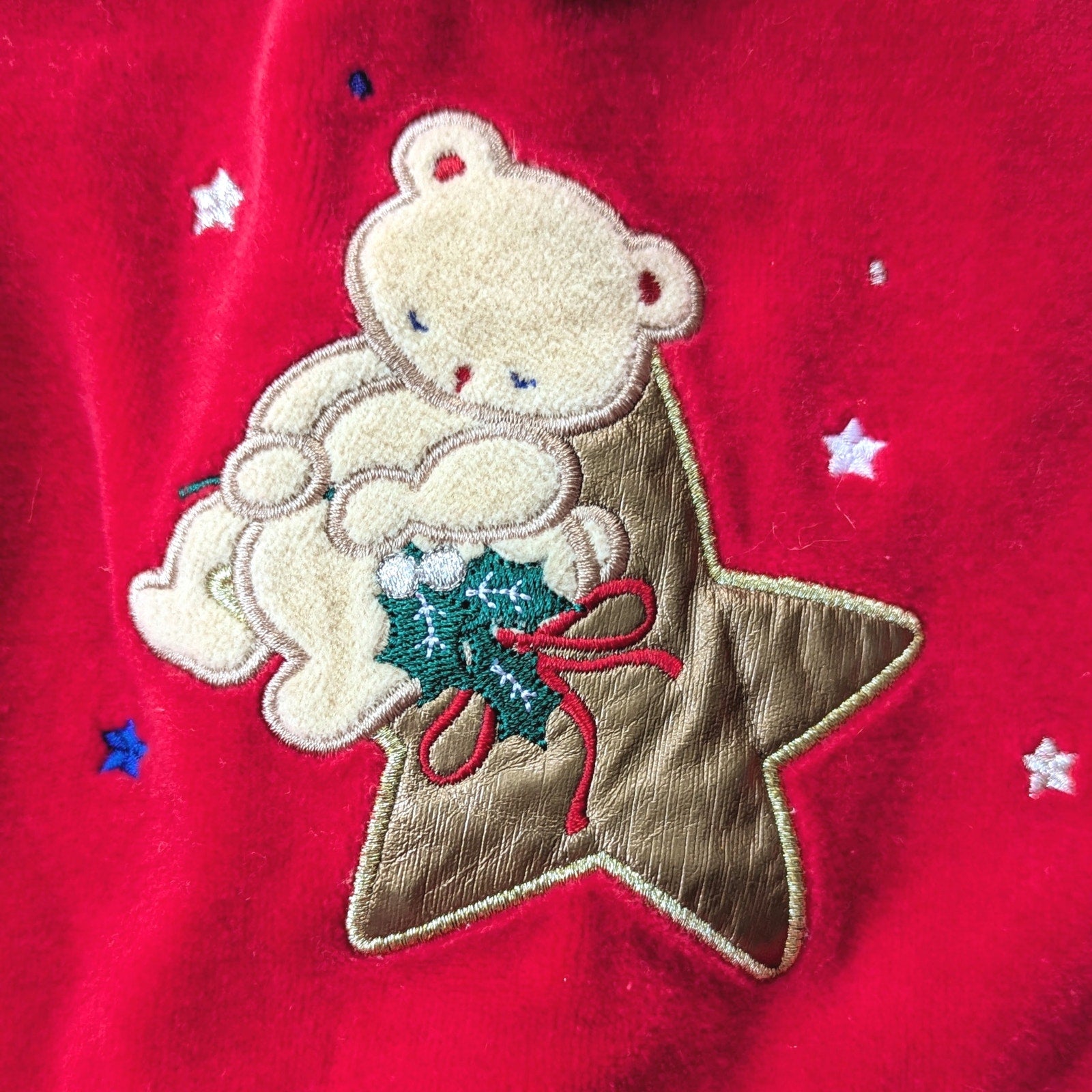 Design: Red velour with teddy bear & gold star appliqué