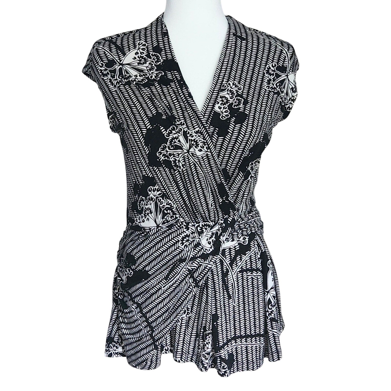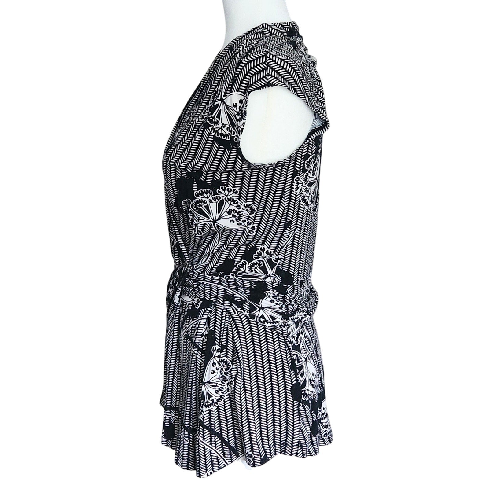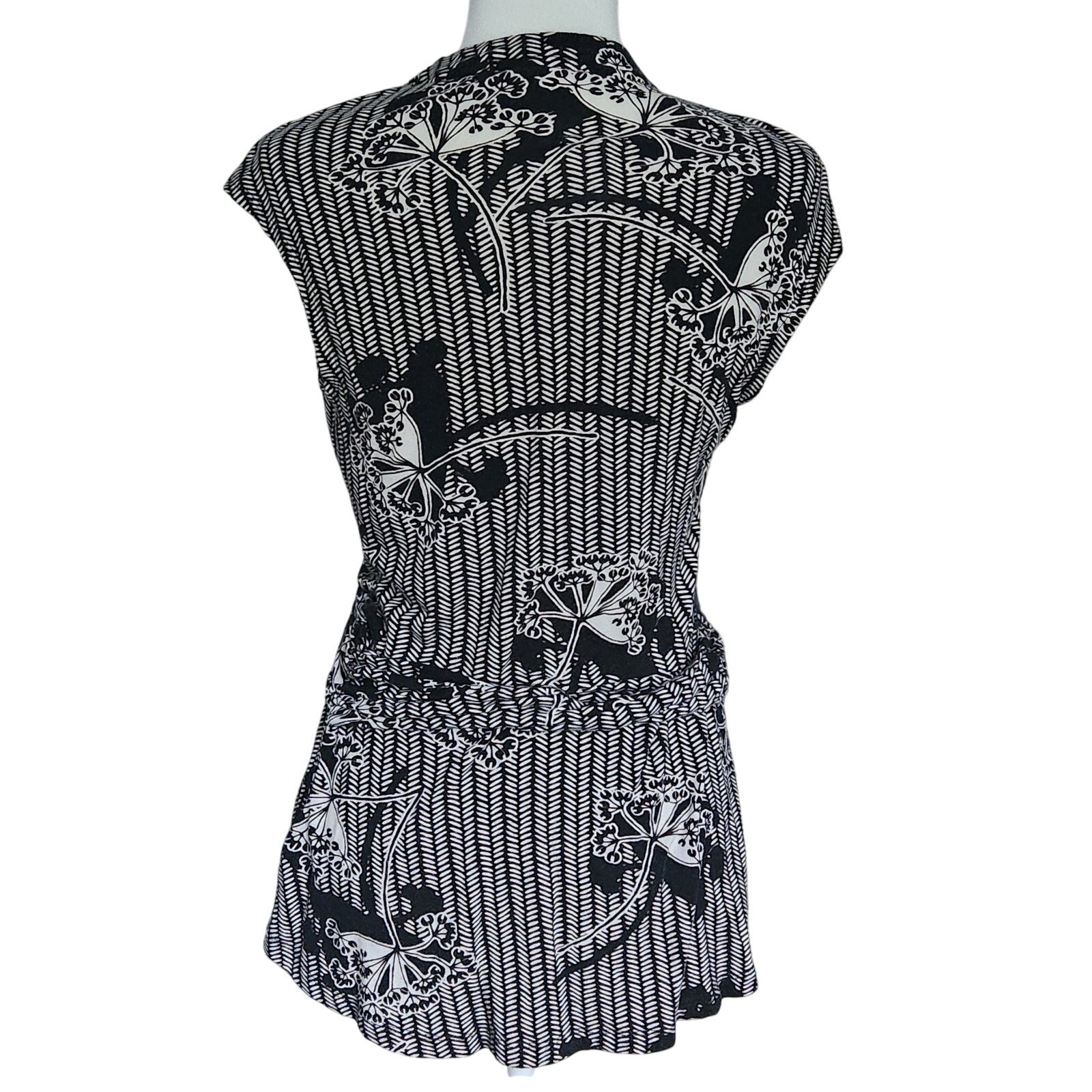 Anthropologie Deletta Lorine Faux Wrap Top | Black White Floral Chevron | Women's M