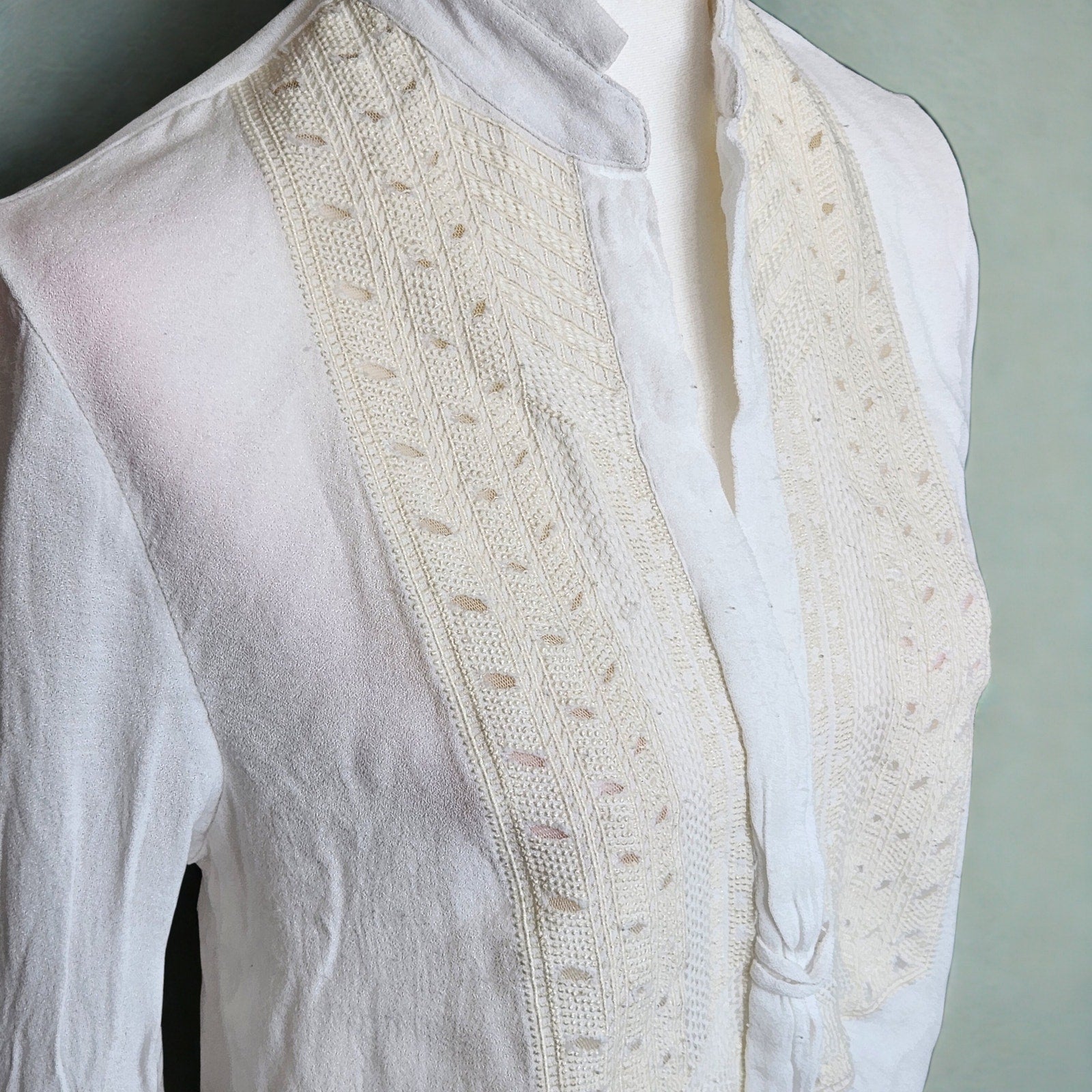 Anthropologie / Leifsdottir White Embroidered Bib-Front Blouse – Women Size 2