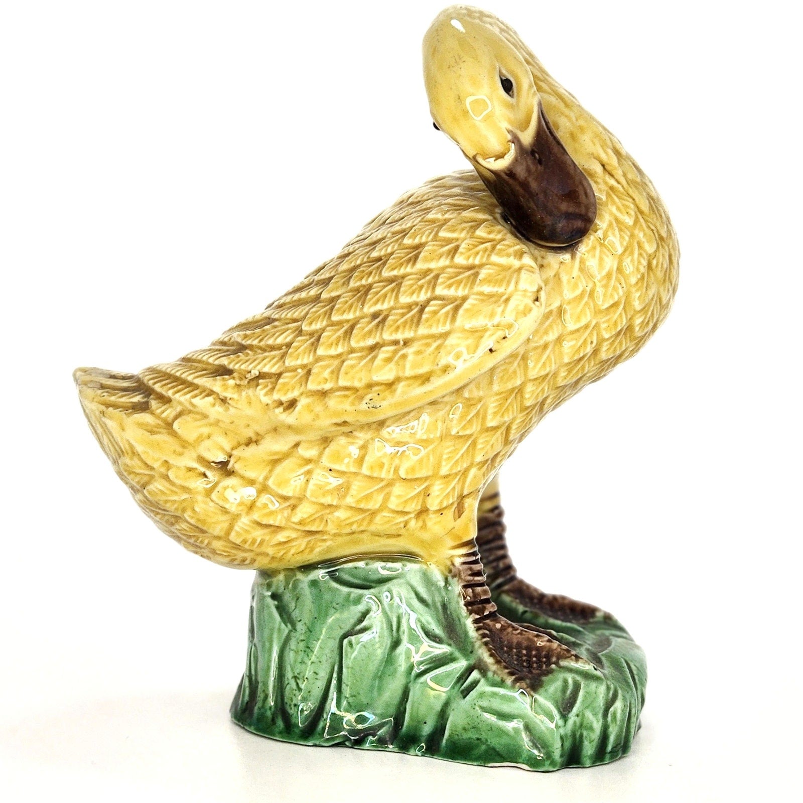 Antique Chinese Porcelain Miniature Yellow Glazed Preening Duck Figurine 1920s
