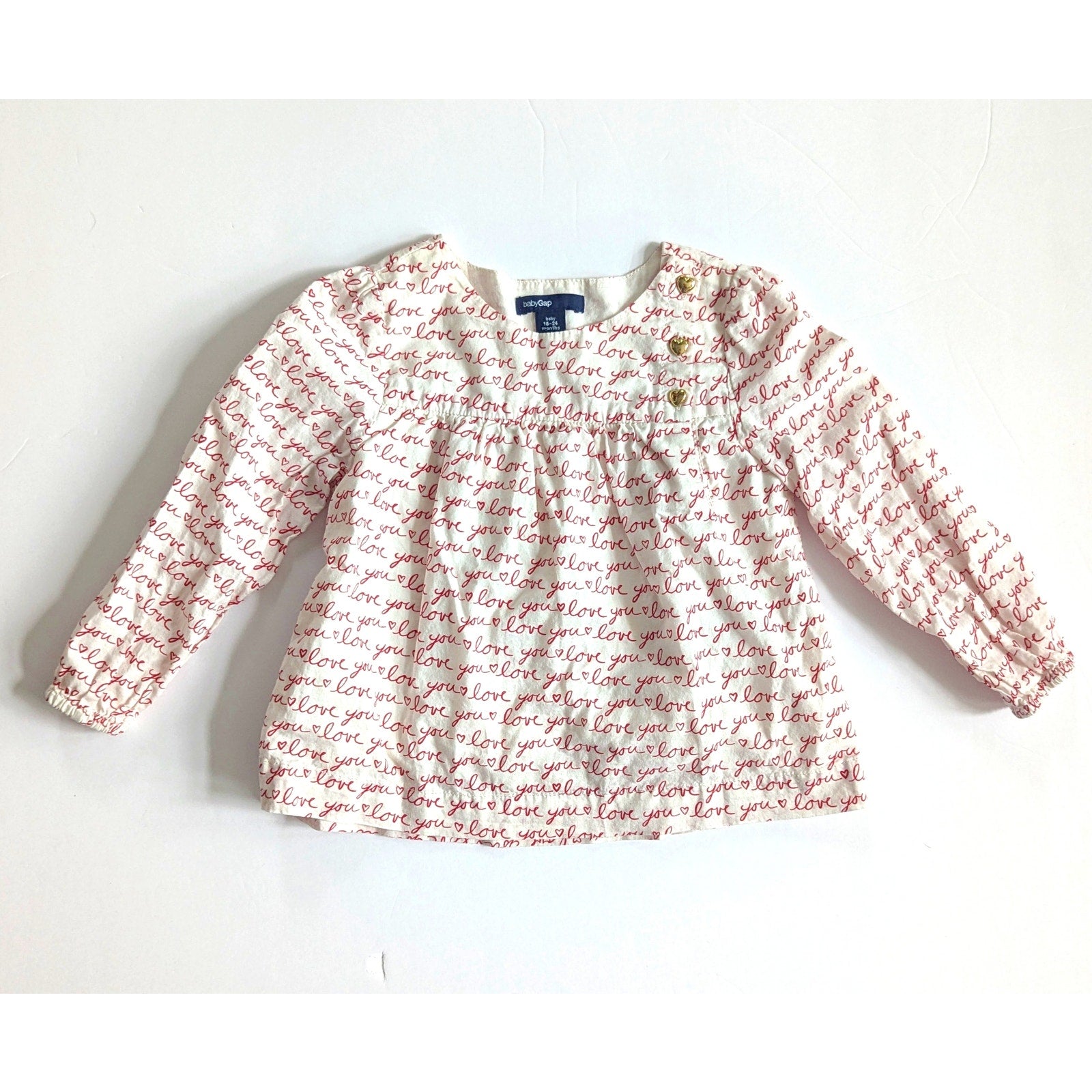 BabyGap “Love You” Hearts Button Blouse Long Sleeve Cotton Shirt | Girl 18–24M