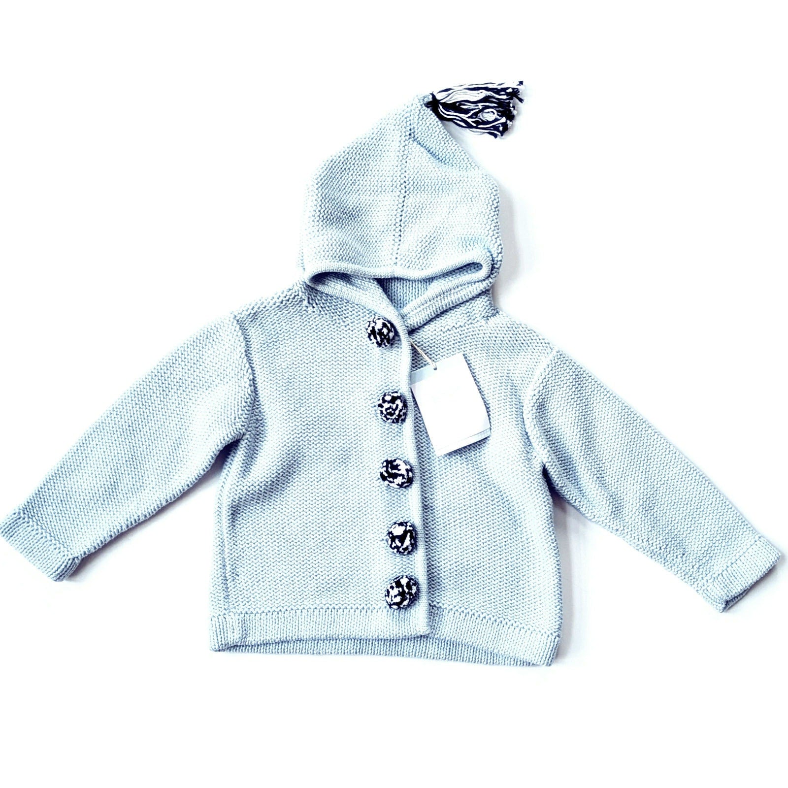 Tags: #BellaBliss #BabyCardigan #PomPomButtons #HandmadeBabyClothes #HoodedCardigan #BabyShowerGift #BoutiqueBaby #HeirloomStyle #BabyBlueKnit #NWT