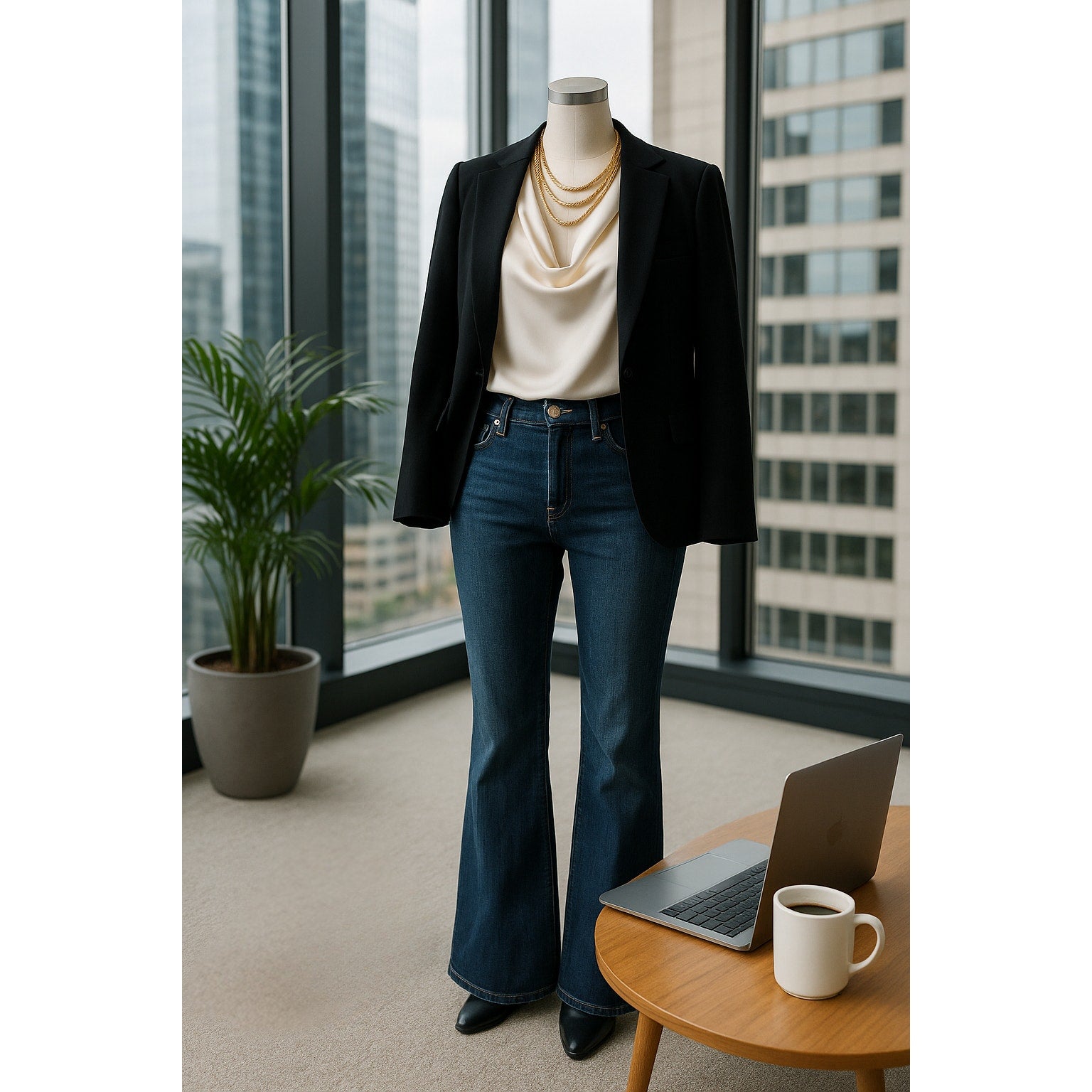 These jeans elongate the legs and pair beautifully with everything from fitted blouses to cozy sweaters. Ideal for both work-casual looks and weekend outings.