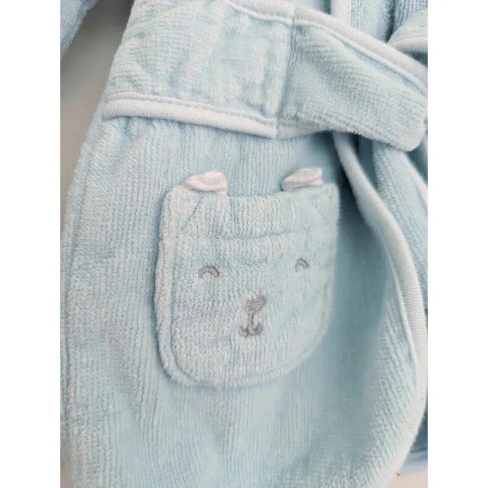 Wrap your little one in cozy cuteness! This Carter’s terry cloth bath robe features an adorable animal hood, soft absorbent fabric, and a gentle light blue hue with striped lining. Perfect for bath time, pool days, or snuggly mornings.