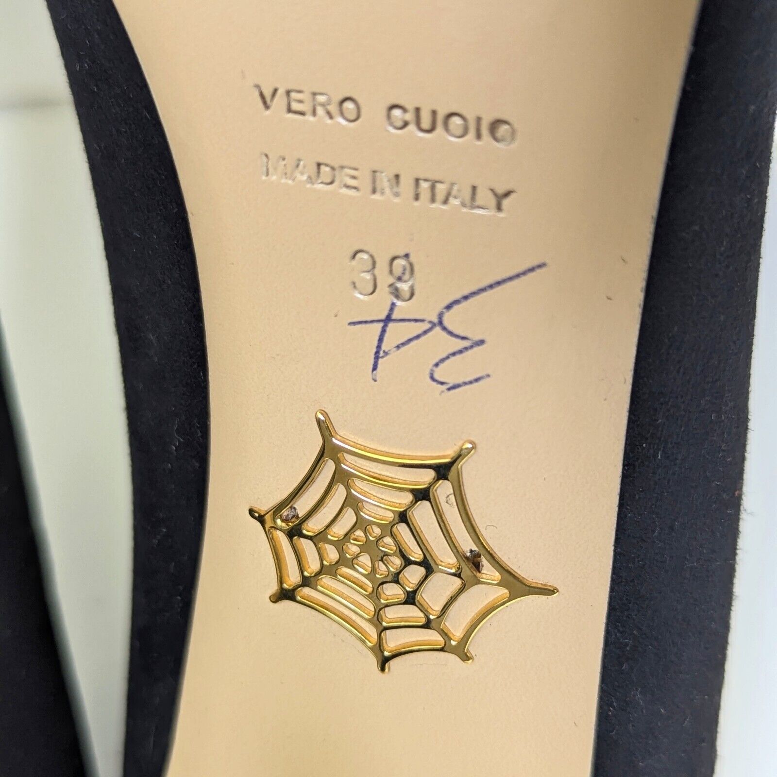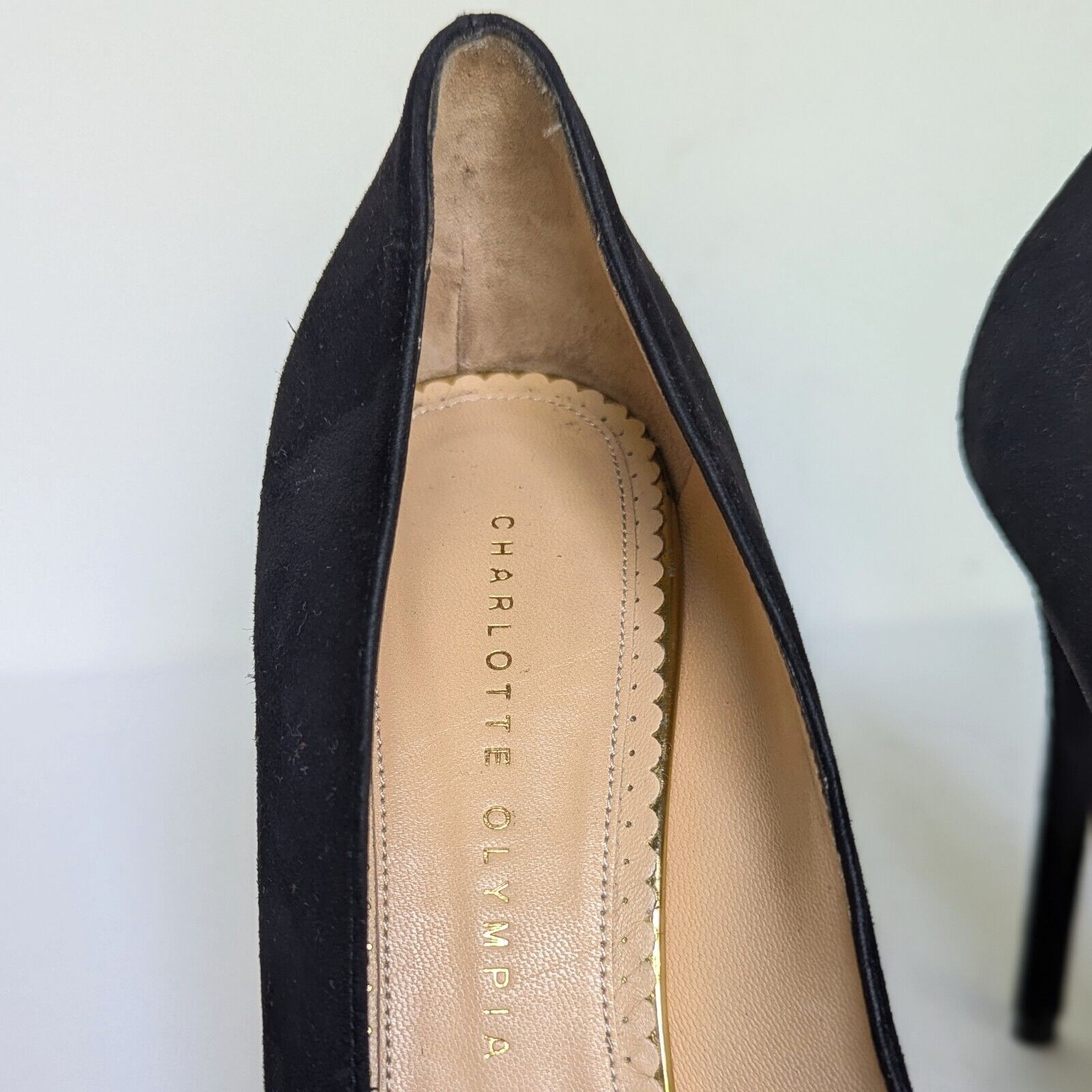 Charlotte Olympia Black Suede & Gold Debbie Pumps Sz 39 | 8.5 Made in Italy