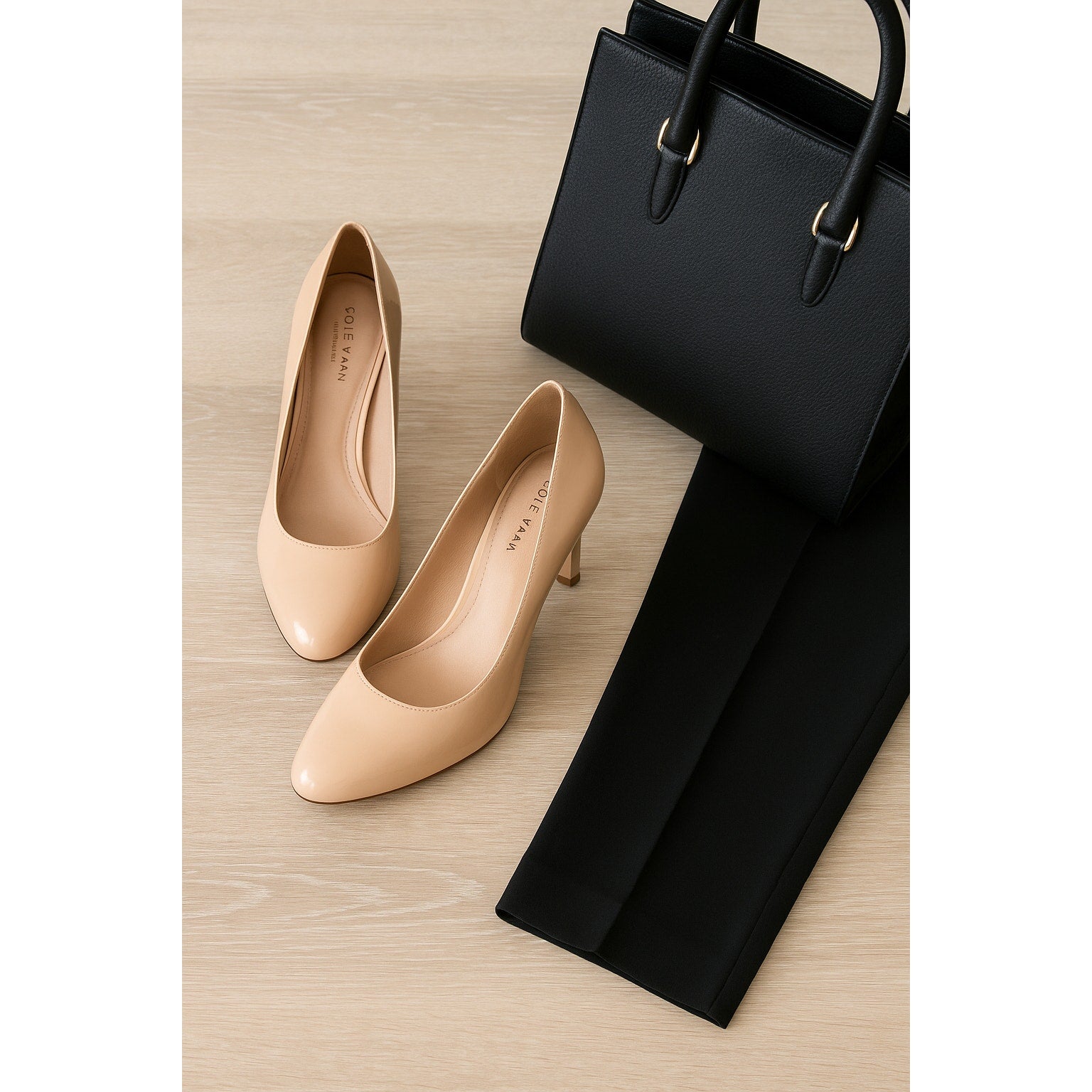 A timeless wardrobe essential from Cole Haan – these nude patent leather pumps are designed for effortless style and everyday sophistication. Crafted with a brushed saffiano leather upper and a sleek 3.5” stiletto heel, they pair beautifully with office attire, cocktail dresses, or denim for a polished look.