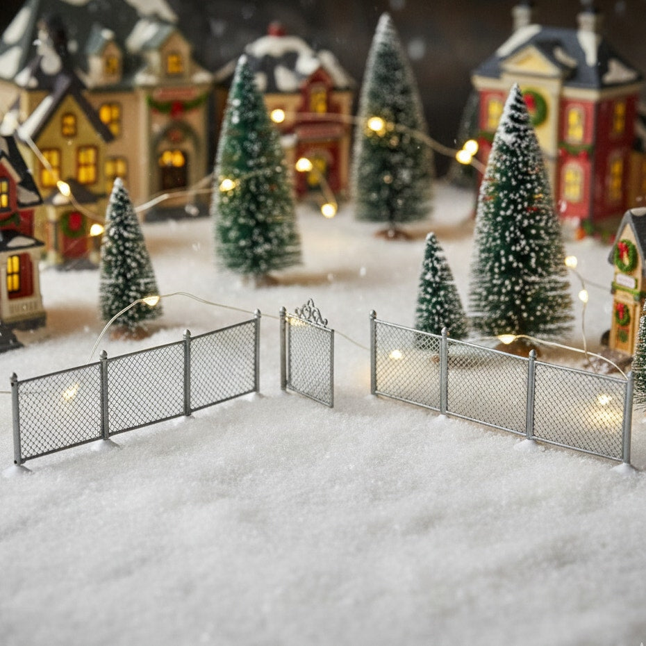 Bring structure and charm to your village layout with this beautifully crafted Department 56 Chain Link Fence With Gate set. Made from hand-painted metal and designed with realistic snow-tipped bases, these pieces add depth and dimension to any display.