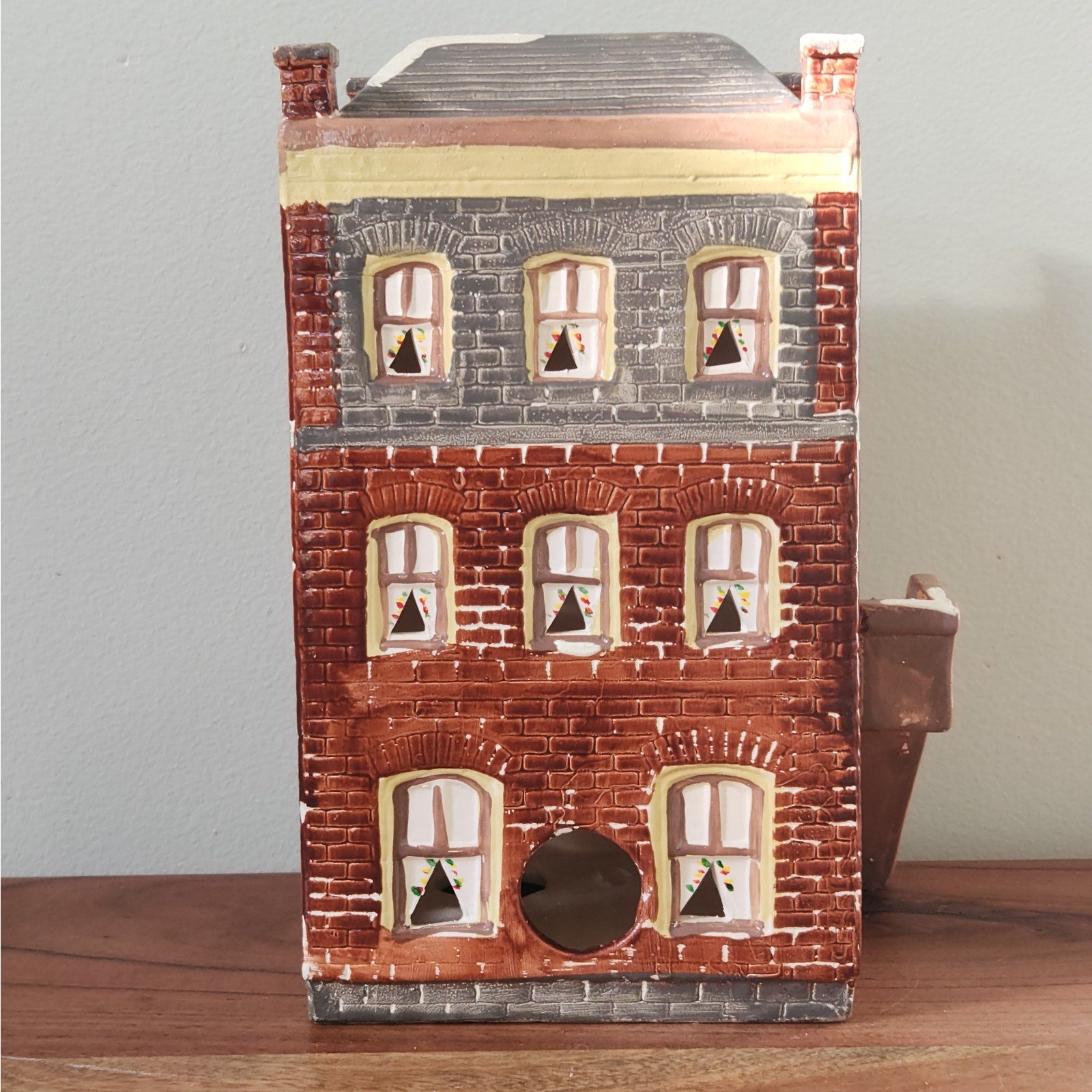 Pre-owned vintage condition — some glaze wear on top roofline & upper windows, two window mouldings are damaged