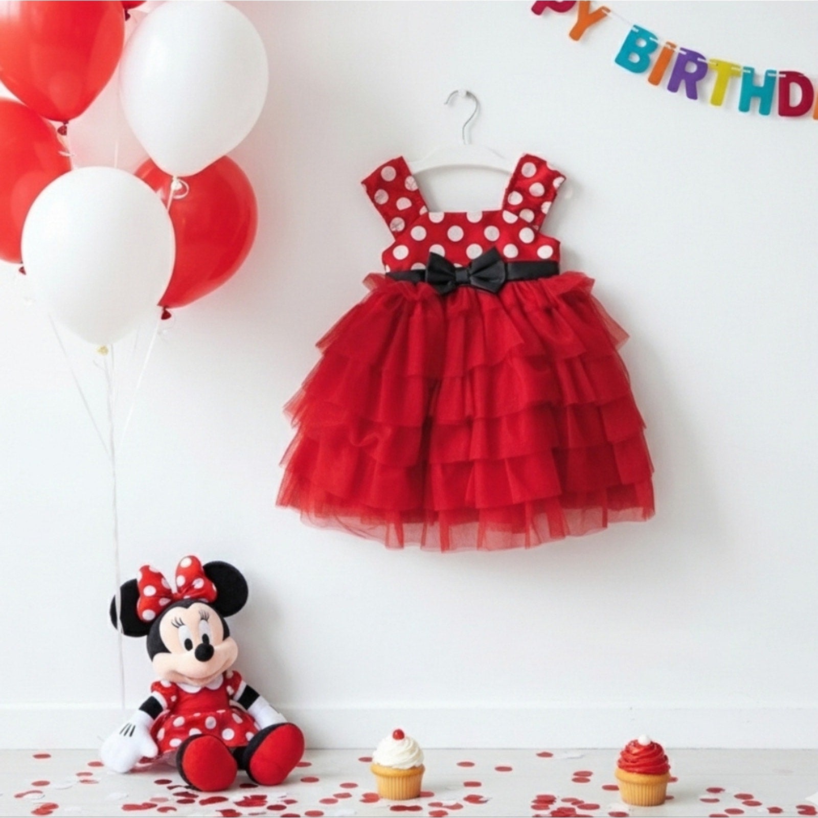 Adorable Minnie Mouse party dress perfect for birthdays, holidays, or Disney trips!