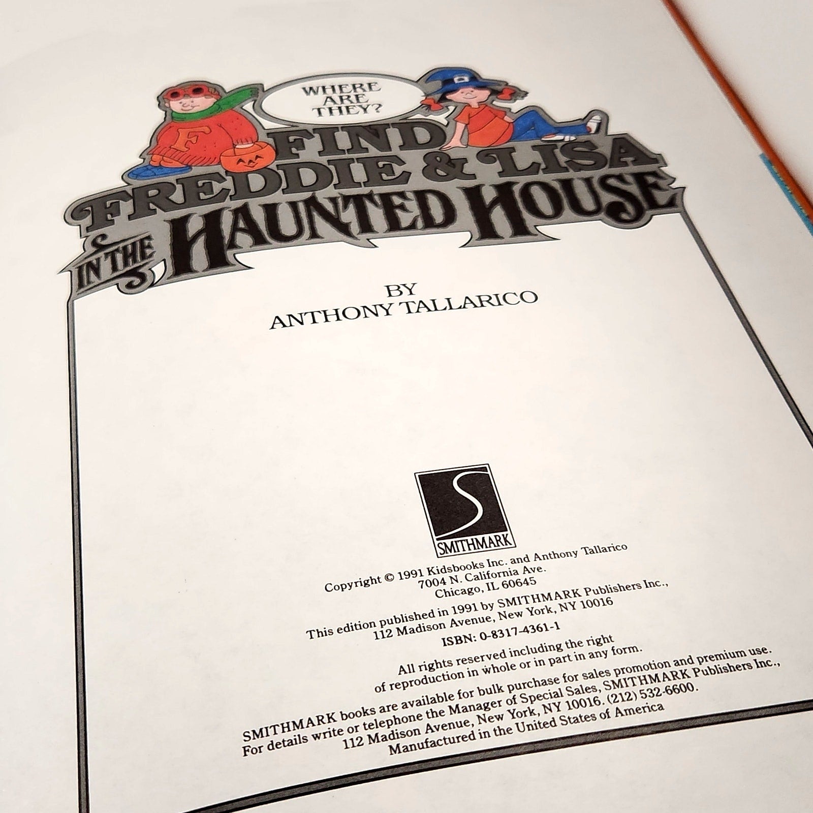 Vintage Kids Book, 1990s Puzzle Book, Halloween Activity Book, Anthony Tallarico, Where Are They Series, Find Freddie and Lisa, Haunted House Book, Retro Seek and Find, Vintage Halloween Decor, Spooky Kids Book, Smithmark Publishers, 1991 Children’s Book, Fall Reading Display, Trick or Treat Decor