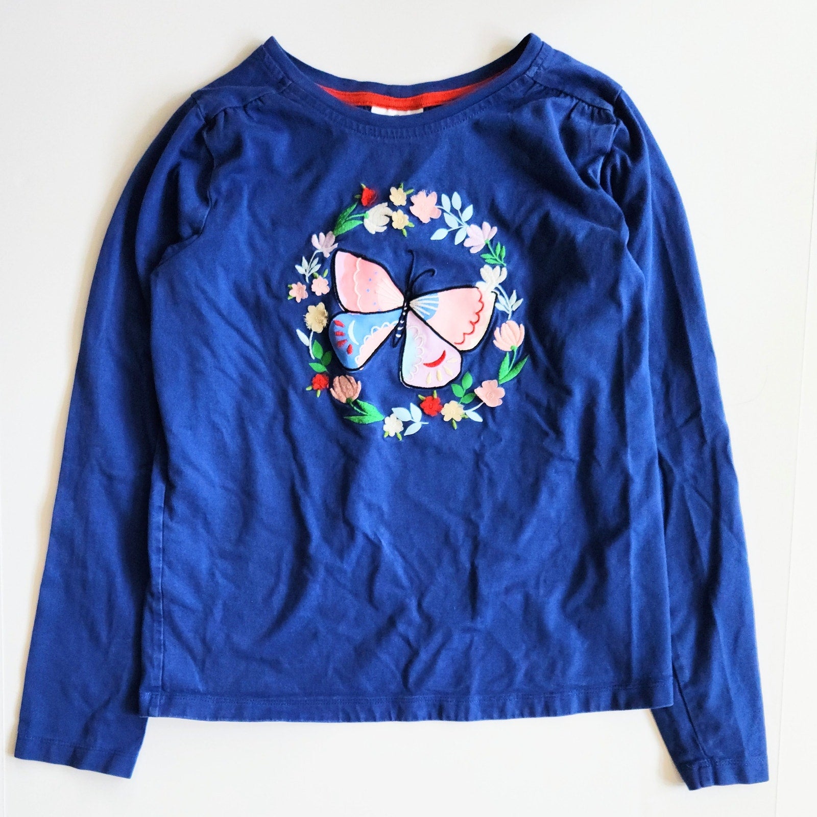 Girls Butterfly Appliqué Long Sleeve Tee in Deep Blue – Size 12 | 150 cm