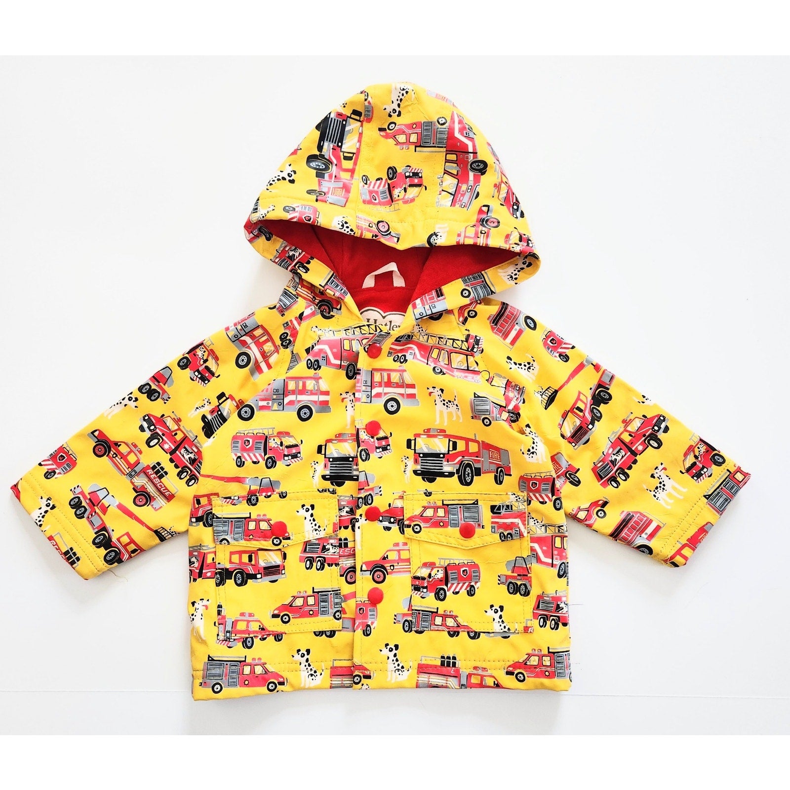 Hatley baby raincoat, fire truck jacket, toddler waterproof coat, PVC-free kids raincoat, Dalmatian print jacket, terry cloth lined raincoat