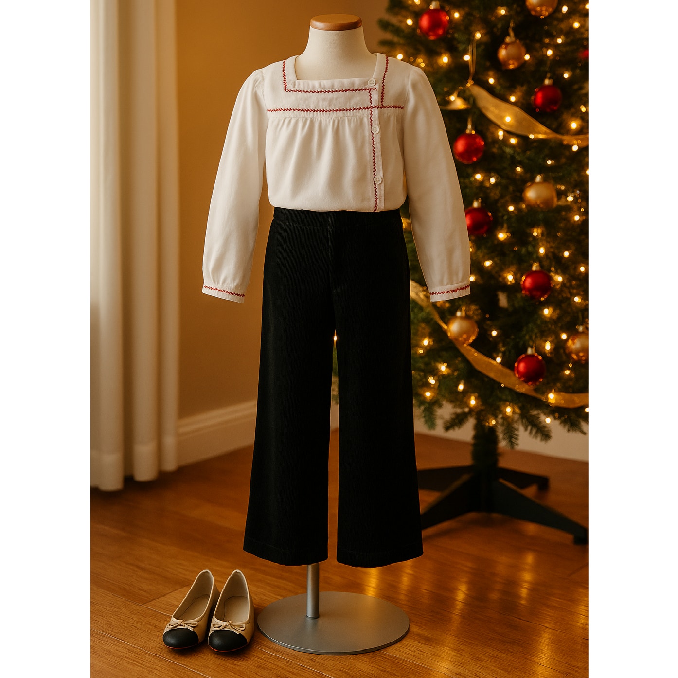 Pair with wide velvet trousers, skirts, or layered under a parka for chic seasonal looks. Perfect for family gatherings, school recitals, holiday dinners, or casual everyday wear.