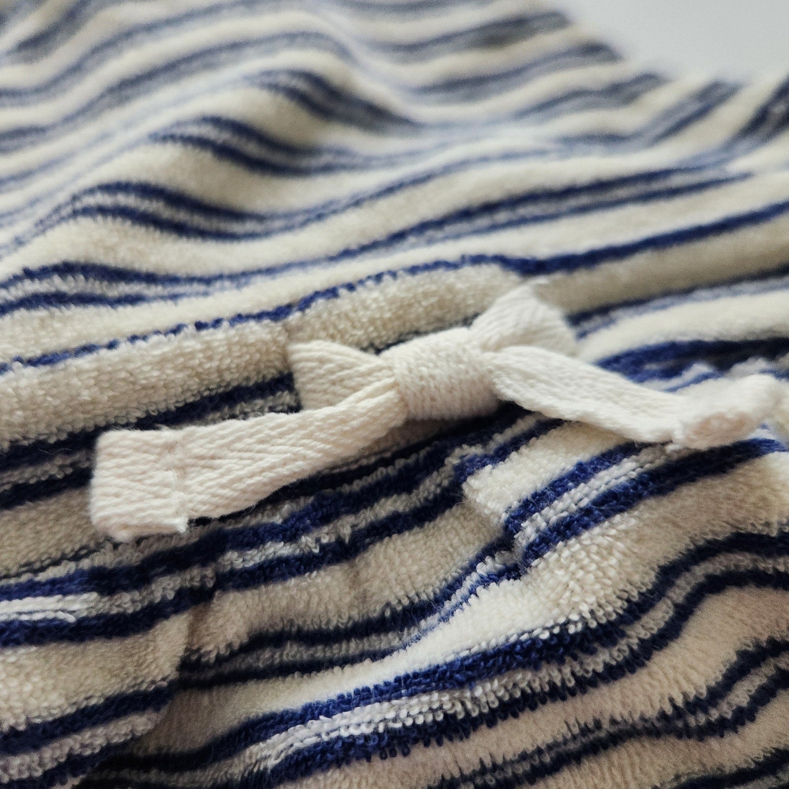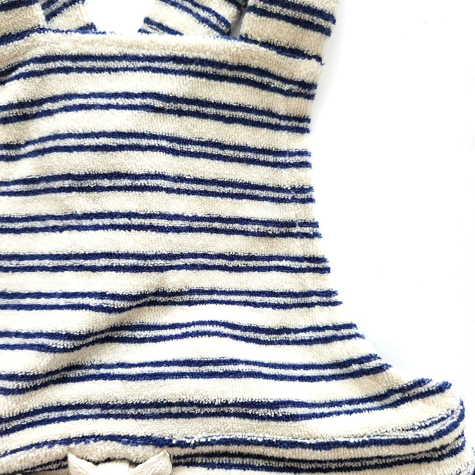 A striped classic for summer, this terry overall with an elasticized waist and little tie detail is an easy pick for warmer days.
