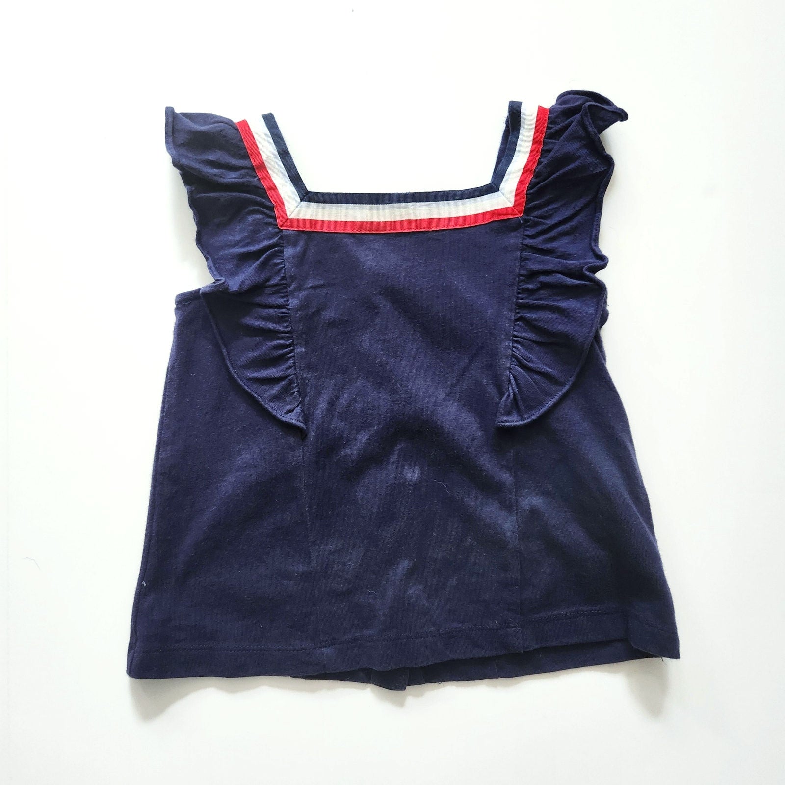 Janie and Jack Navy w/ Red White & Blue Ribbon Flutter Sleeve Girls Top Size 3