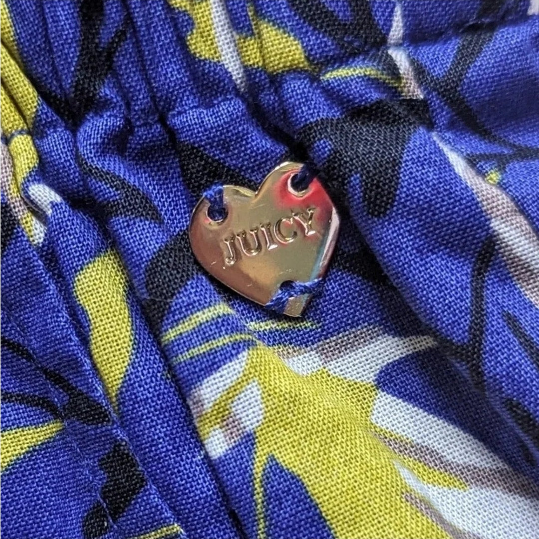 Juicy Couture Girls 12 Romper Cobalt Glow Tropical Print Smocked Bodice NWT