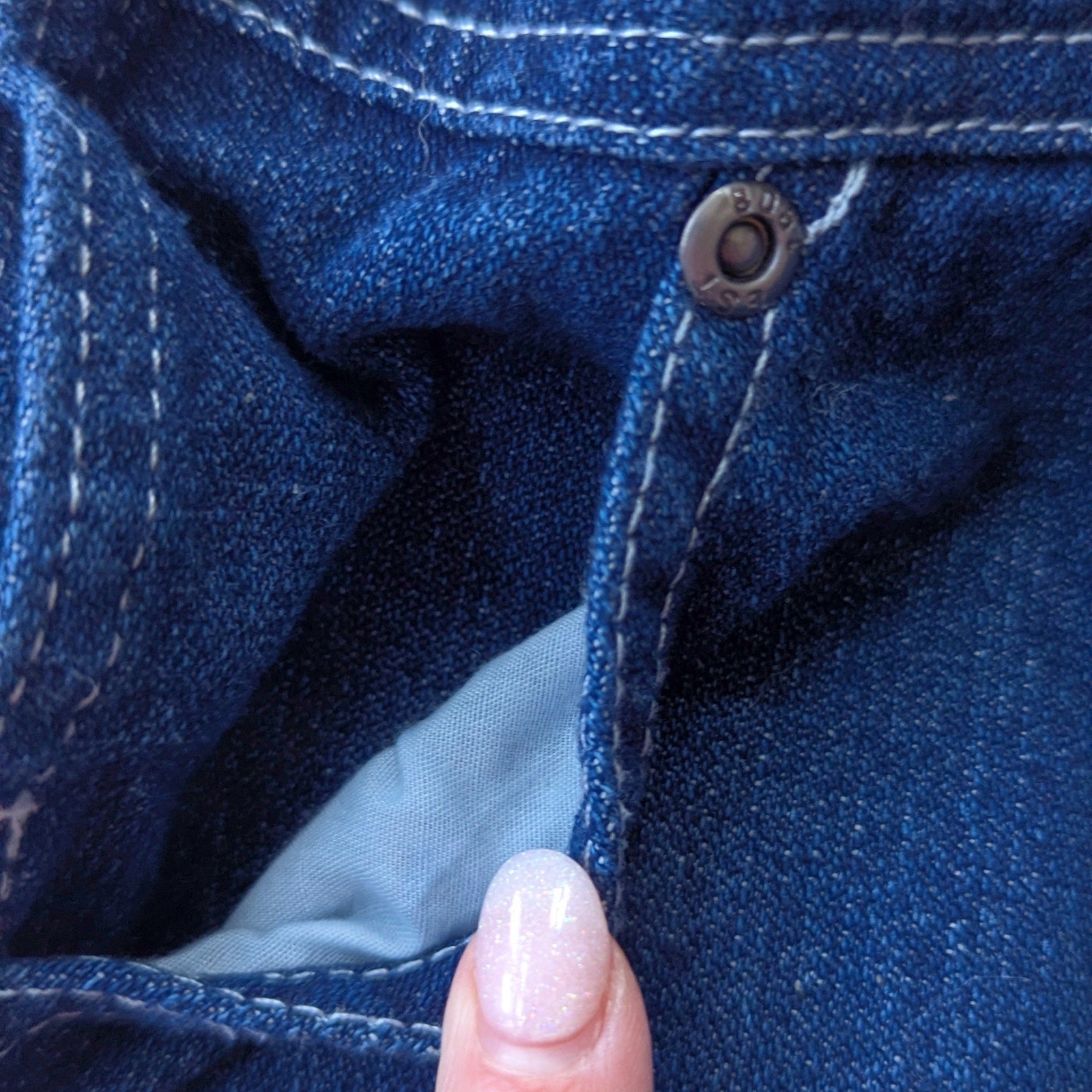 Classic dark denim Key infant bib overalls in size 18 months. Made from durable cotton with adjustable straps, side button closures, and a front bib pocket with the Key logo. Snap closures along the inseam make diaper changes easy. Perfect for everyday play, farmhouse-inspired photoshoots, or layering over tees for a classic vintage look.