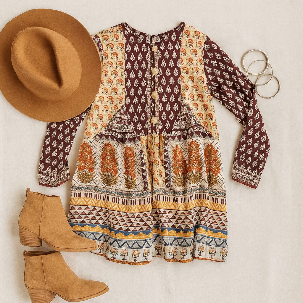 Features: Artisan block-print inspired designs, button front detail, flowy boho silhouette