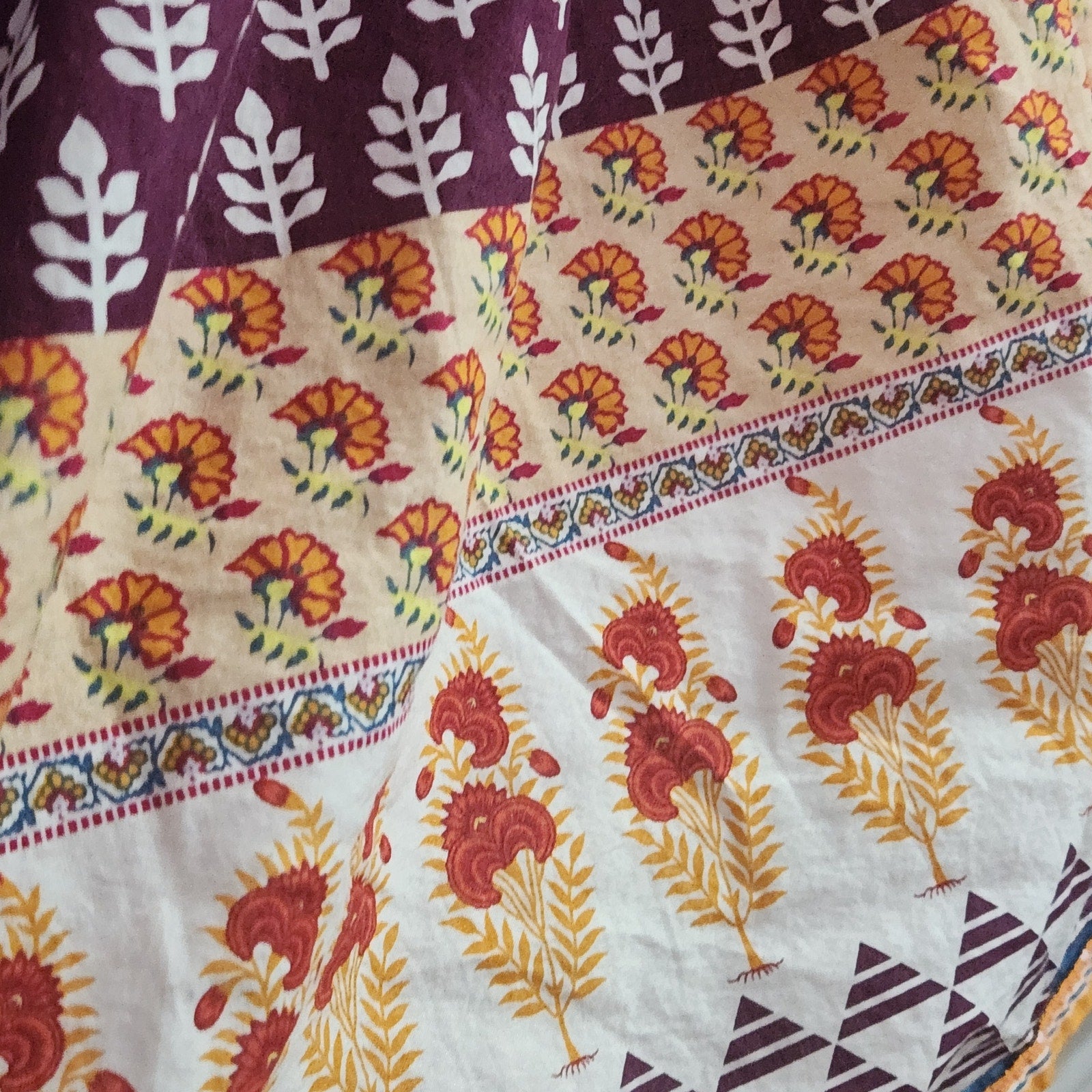 Khaadi Cotton Pom Pom Long Sleeve Flare Tunic Boho Artisan Print | Women Size 8