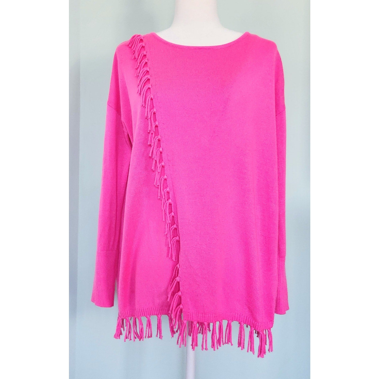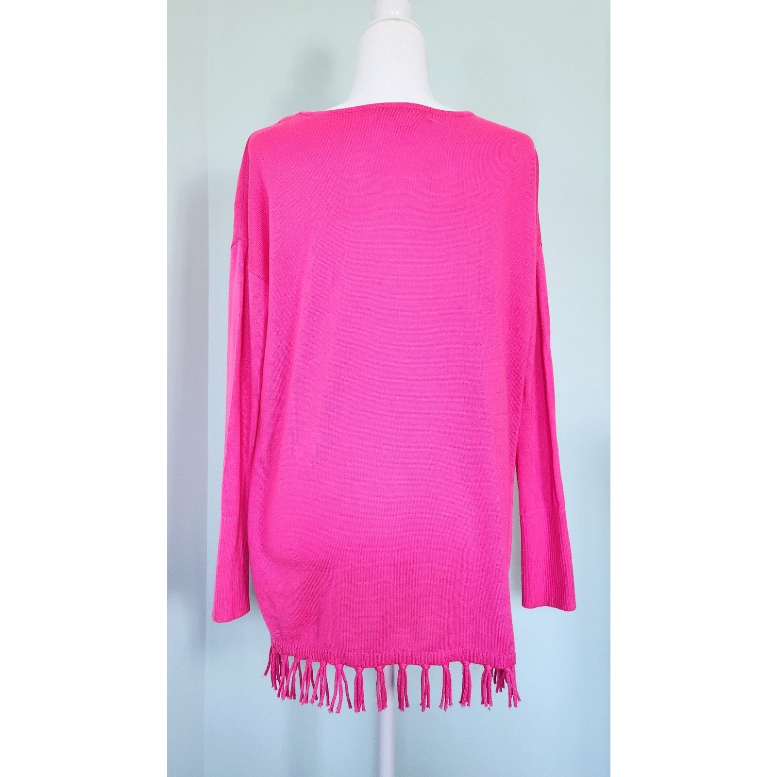Tags: Lilly Pulitzer pink sweater, Lilly Pulitzer tassel fringe top, Lilly Pulitzer medium sweater, Lilly Pulitzer resort wear, hot pink pullover, coastal chic Lilly Pulitzer, Lilly Pulitzer vacation outfit spring fall autumn winter Barbiecore preppy coastal cozy bright casual country club party family photos classic traditional