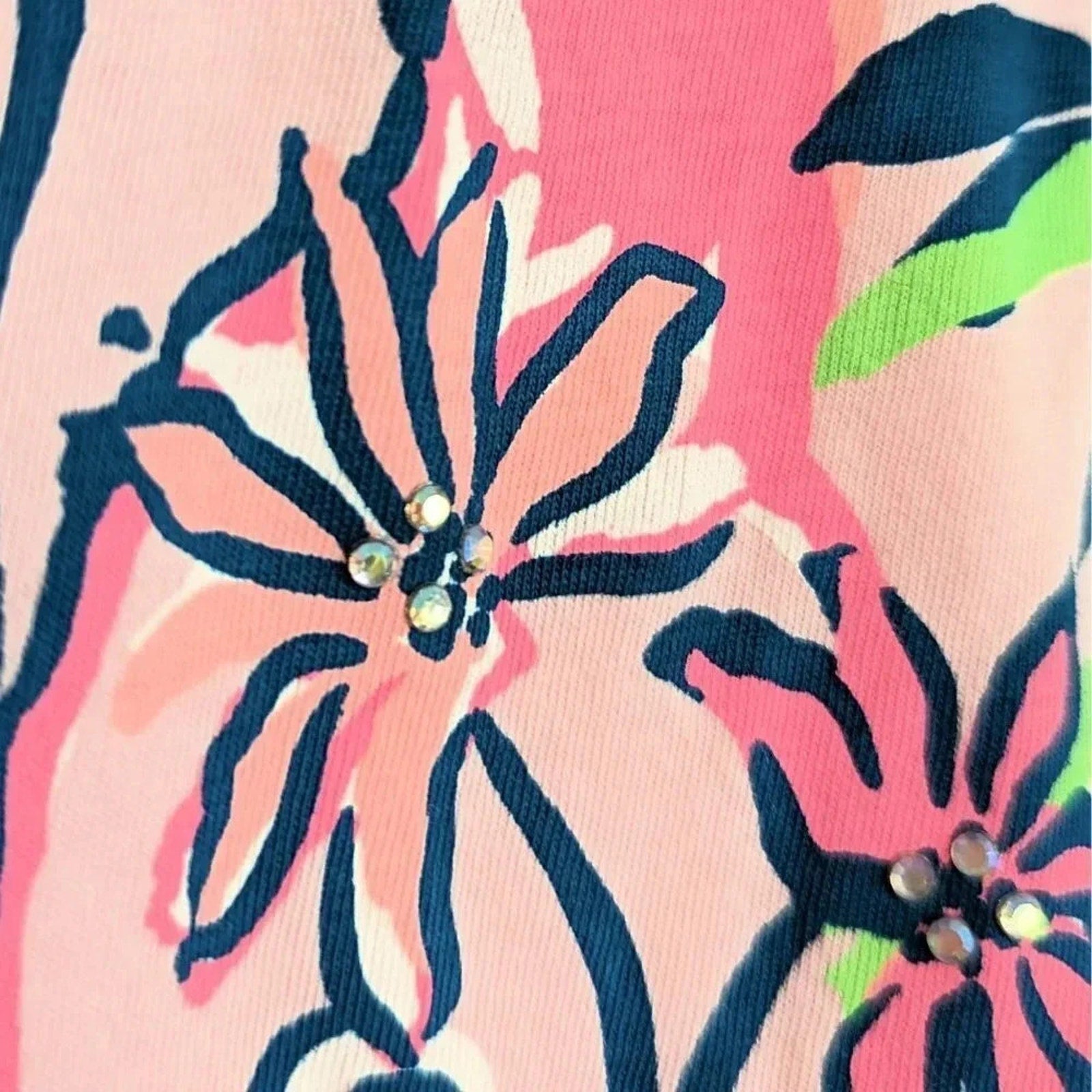 Brighten up your little one’s wardrobe with this adorable Lilly Pulitzer long sleeve top, featuring a signature tropical monkey and palm floral print accented with tiny jewel-like embellishments, signed "xx, Lilly". The soft pink cotton fabric makes it both comfortable and chic — perfect for playdates, parties, or layering on breezy days.