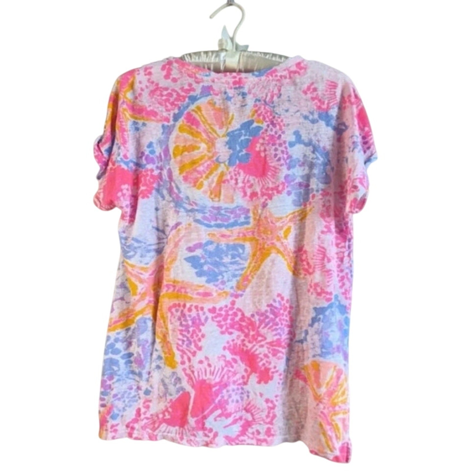 Lilly Pulitzer Inara Linen Top | Paradise Pink Bohemian Beach Starfish | Women's Size M