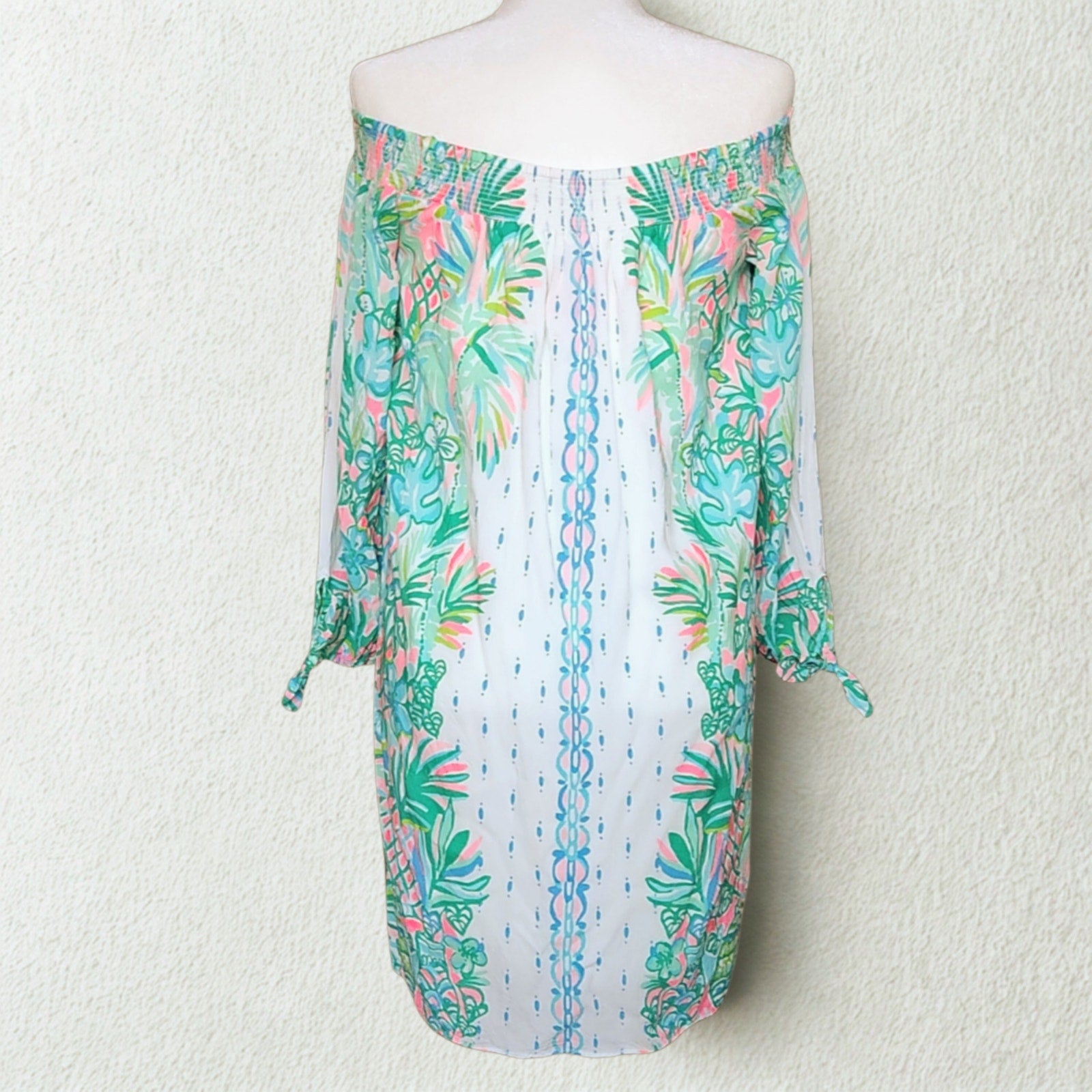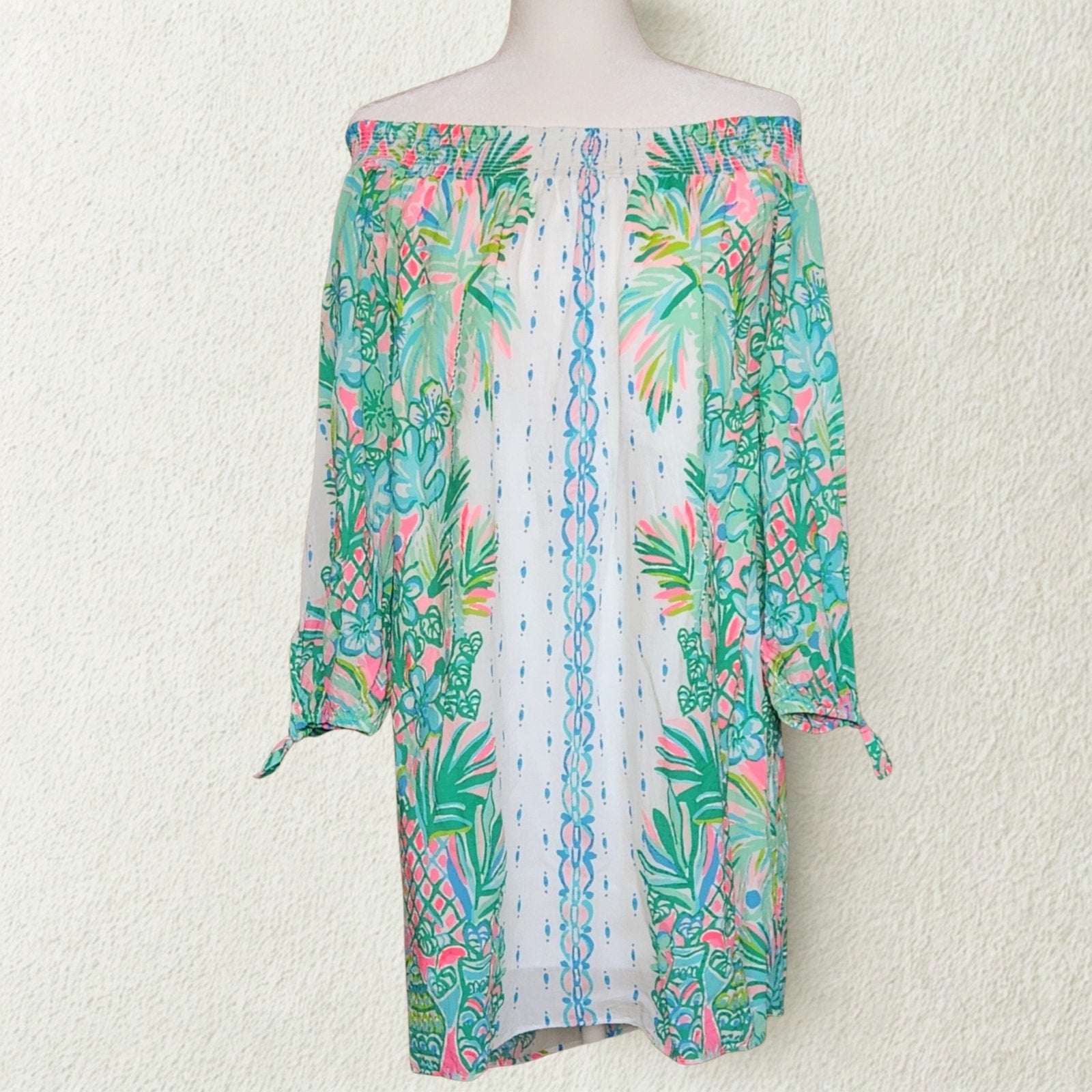 Tags: Lilly Pulitzer dress, Maryellen off shoulder, Coconut Row print, Lilly shift dress, tropical vacation outfit, pineapple print dress, resort wear, beach dinner dress, floral off shoulder dress, Lilly Pulitzer medium, summer party outfit, cruise wear, boho chic resort style, Lilly Pulitzer Coconut Row, Lilly Pulitzer white dress coastal preppy Bohemian boho chic nautical beach beachy resortwear pool spring summer fall casual party country club travel breathable tropical party date night brunch hypoallergenic eczema friendly