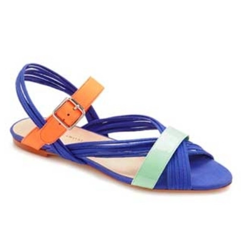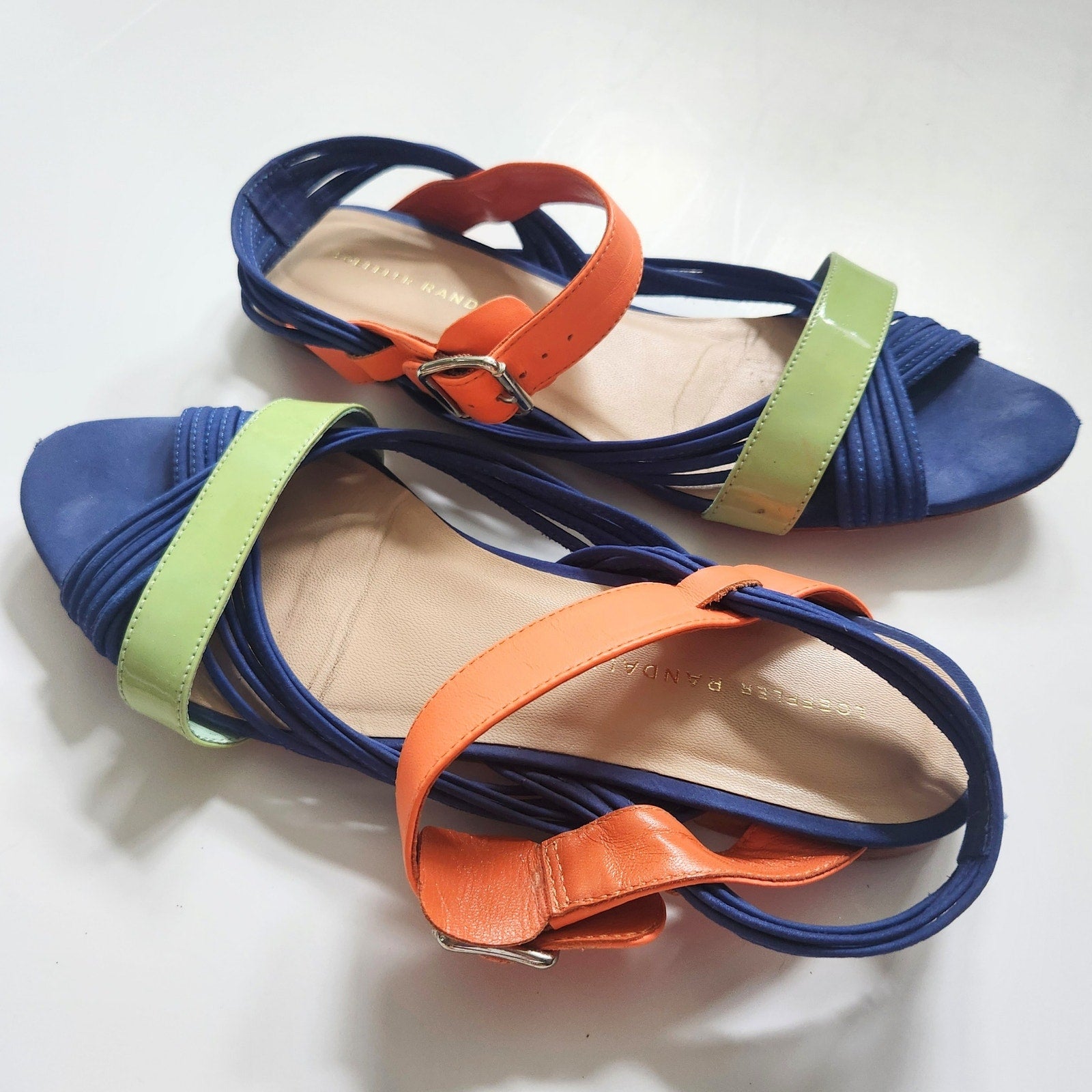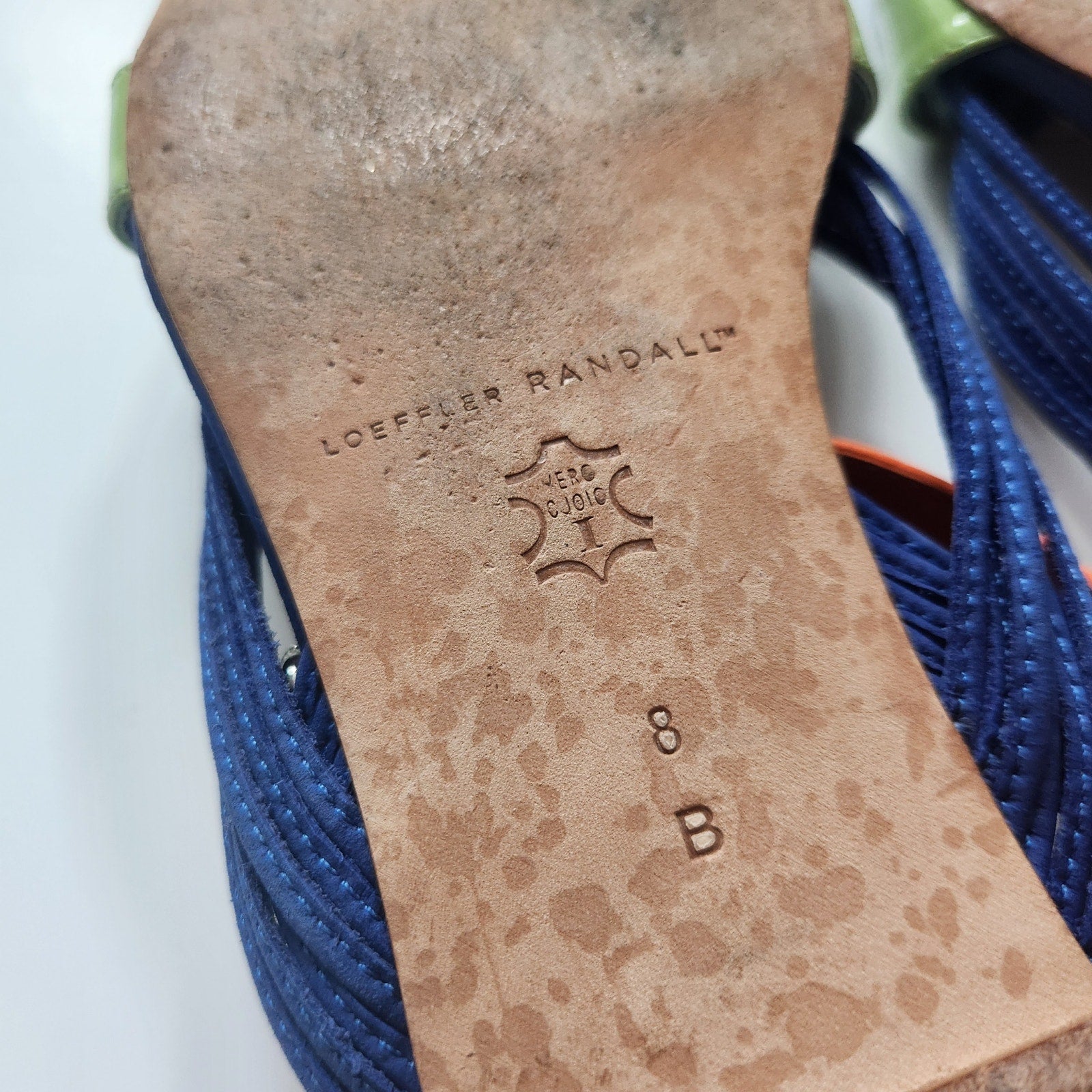 Loeffler Randall Women’s Strappy Flat Sandals Blue Orange Mint Green Suede Size 8
