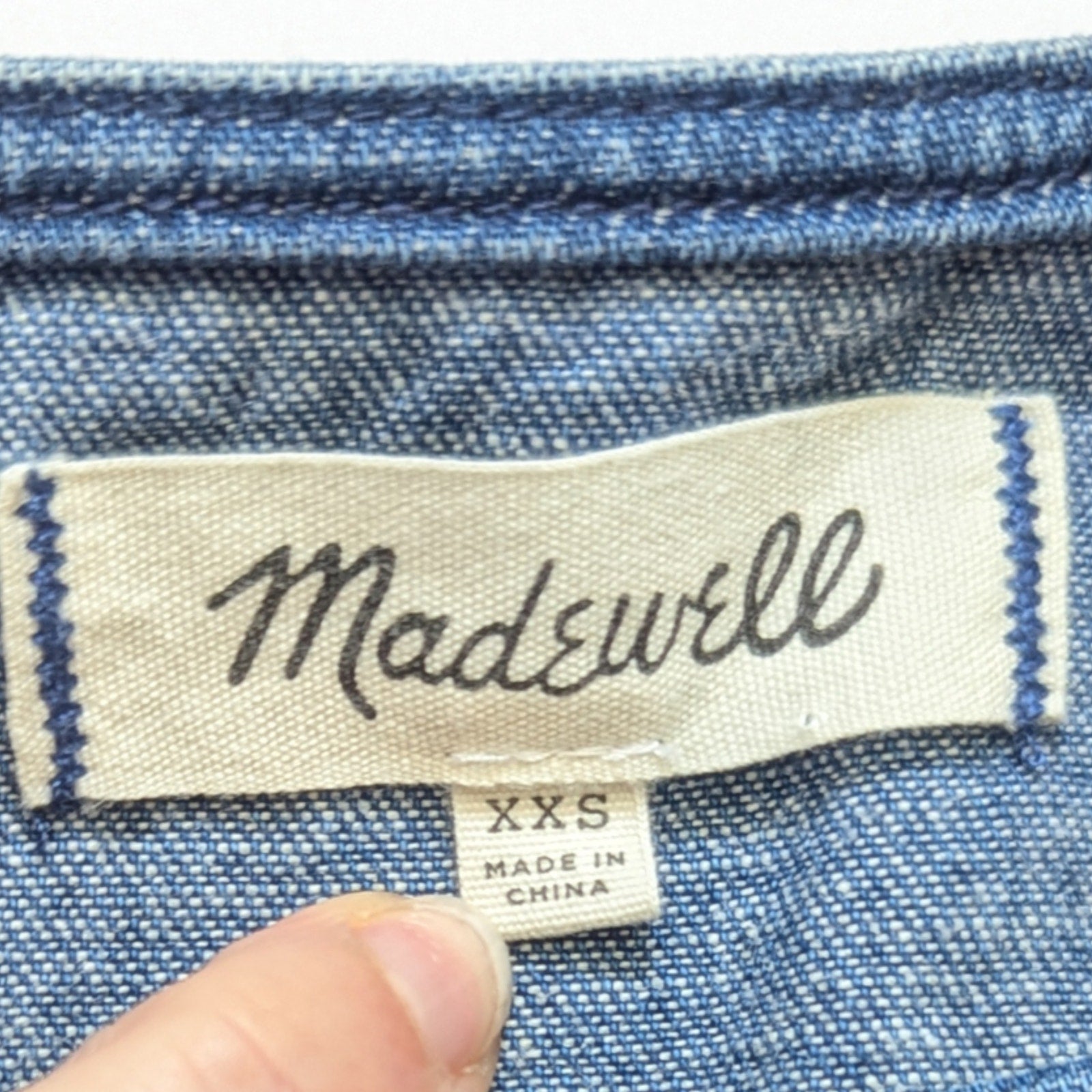 Madewell 3/4 Sleeve Denim Shift Dress Cotton Linen Blend Raw Hem | Women's Size XXS