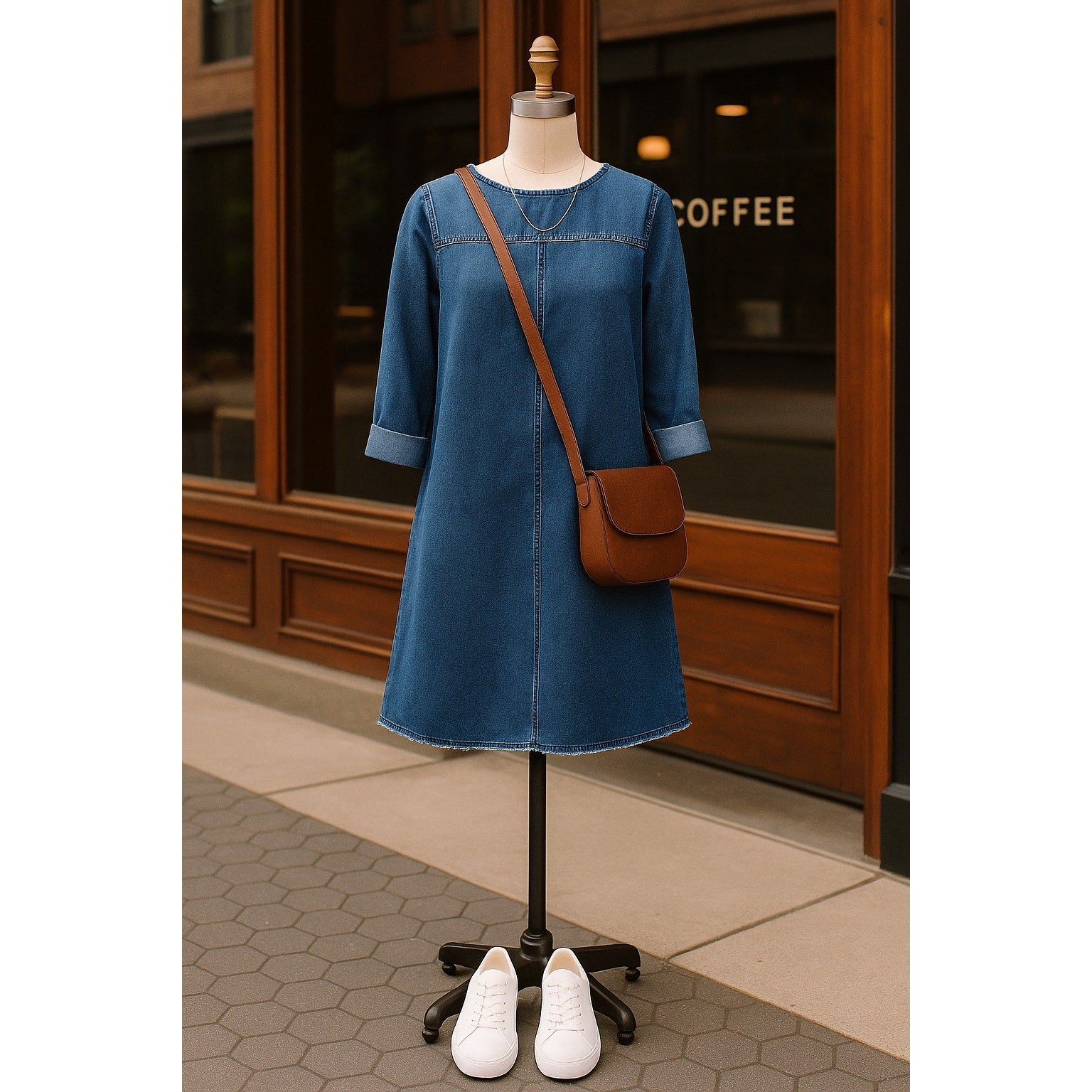 #MadewellDenim #ShiftDress #RawHem #MadewellStyle #MinimalistWardrobe #FallStyle #OOTD #EffortlessChic #LinenBlend #MadewellForever