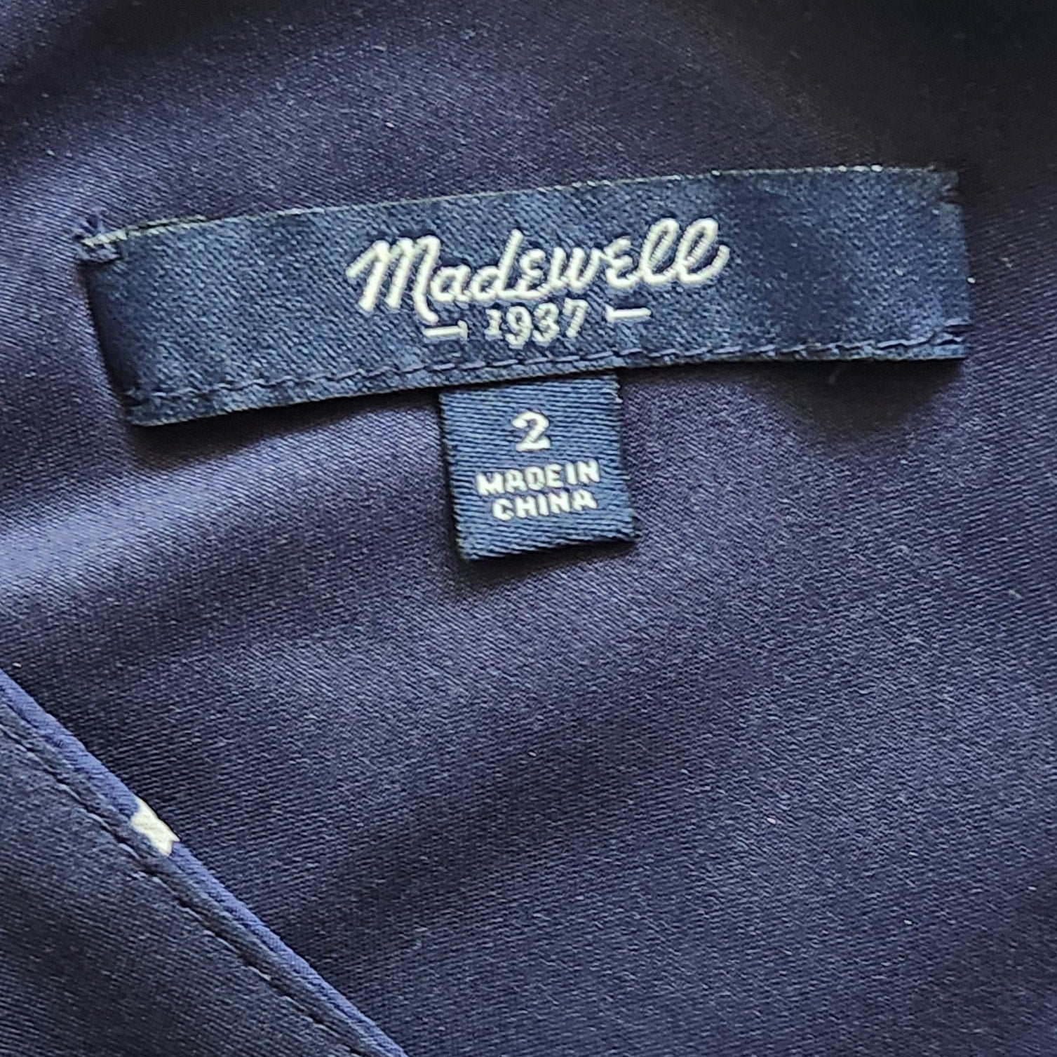 Madewell Silk Cross-Back Dress | Dots & Stars Print | Midnight Blue | Women Size 2 | Short Sleeve Lined Party Brunch Dress