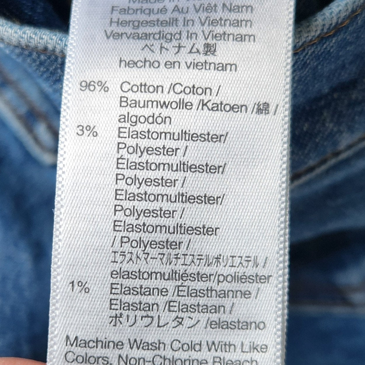 85% cotton (23% of which is recycled)/13% recycled polyester/2% elastane.