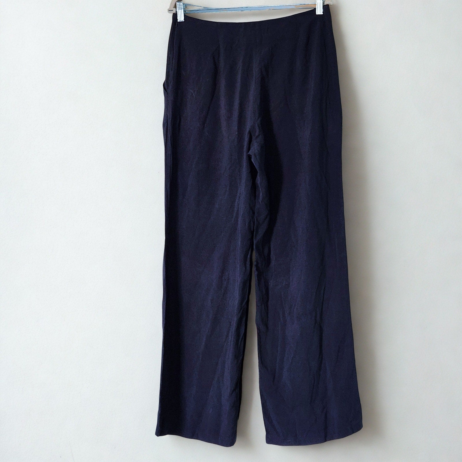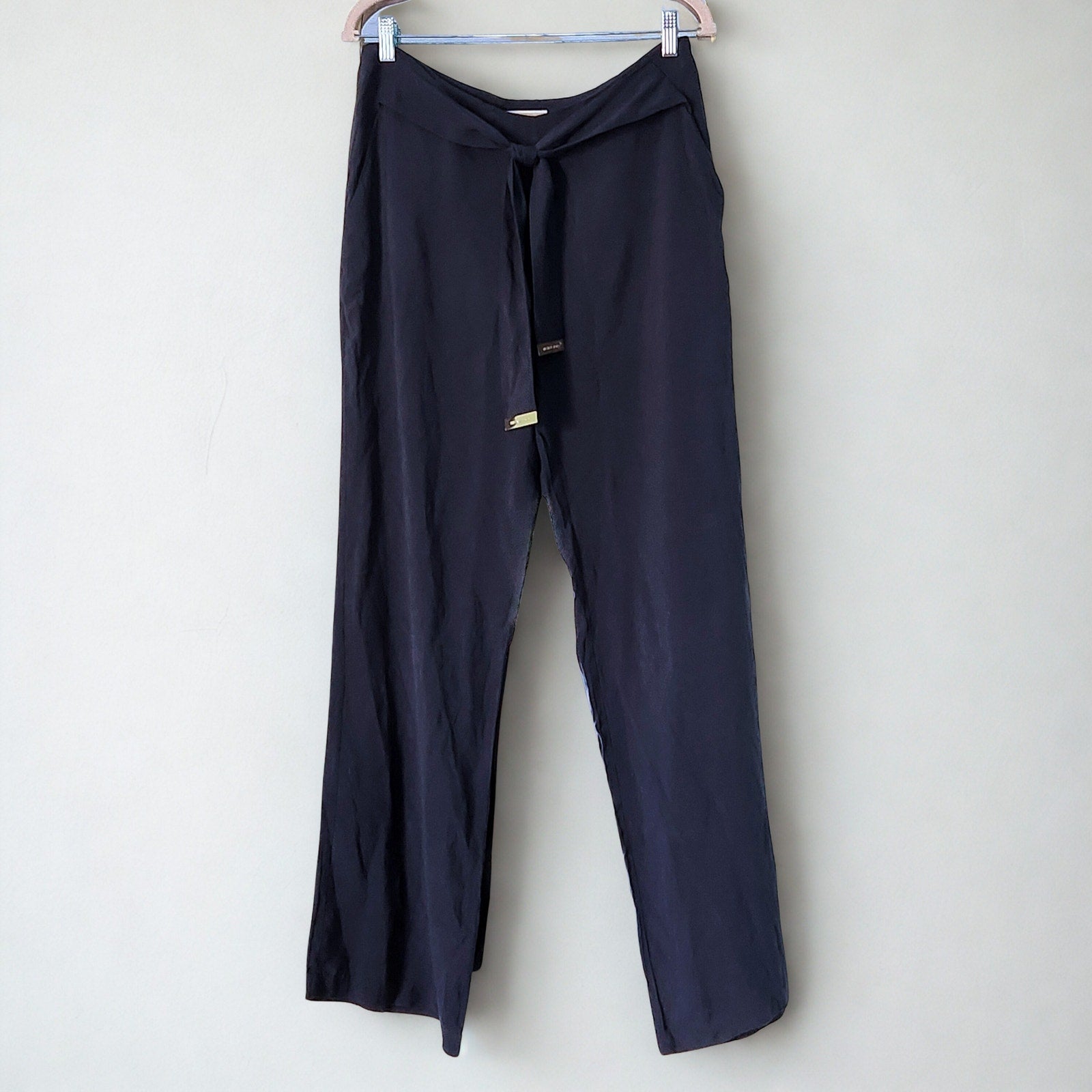 Michael Kors Wide Leg Pants Navy Blue Viscose Tie Waist | Women's 10