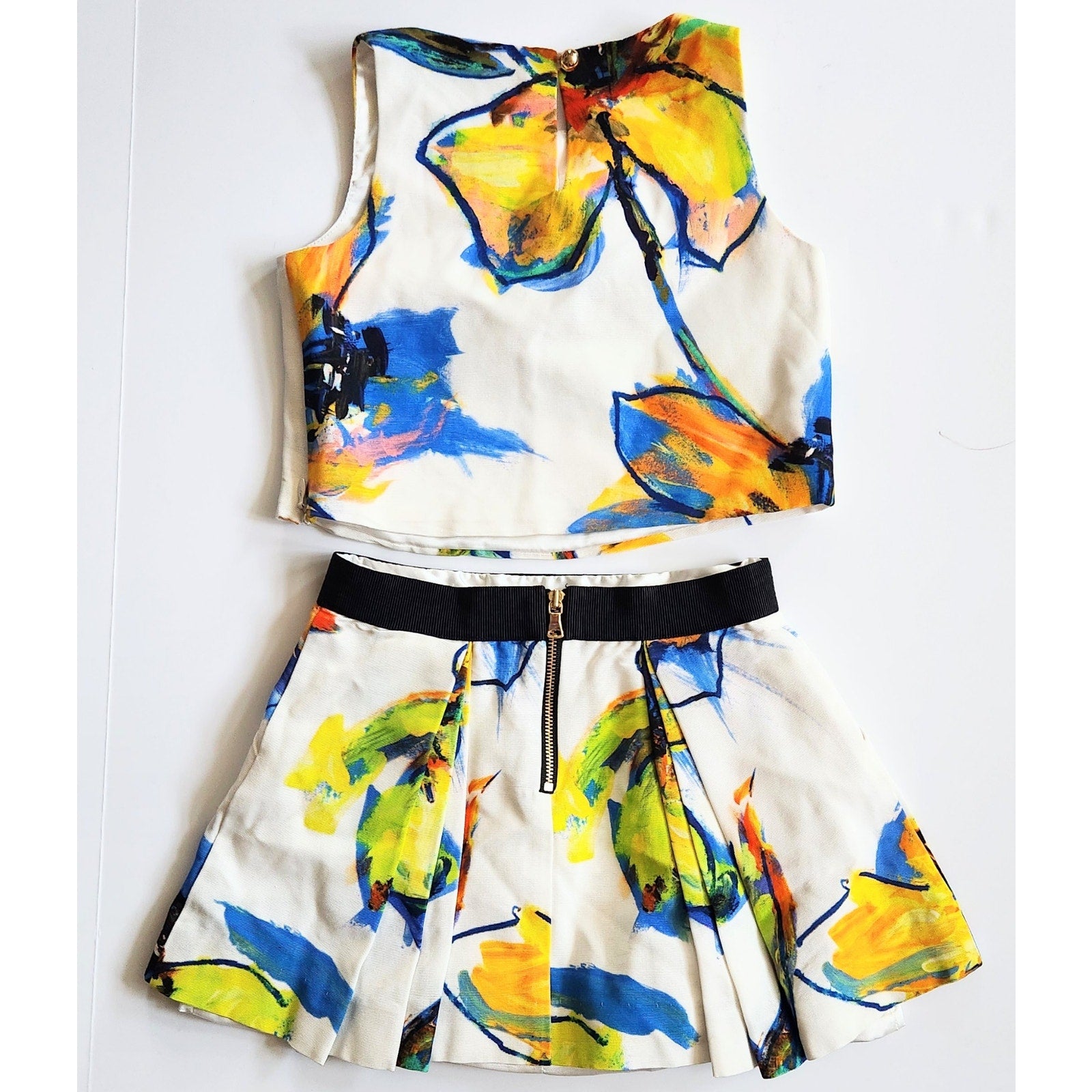 Milly Minis Girls Art Floral Two Piece Set | Sleeveless Crop Top & Skirt | Size 4