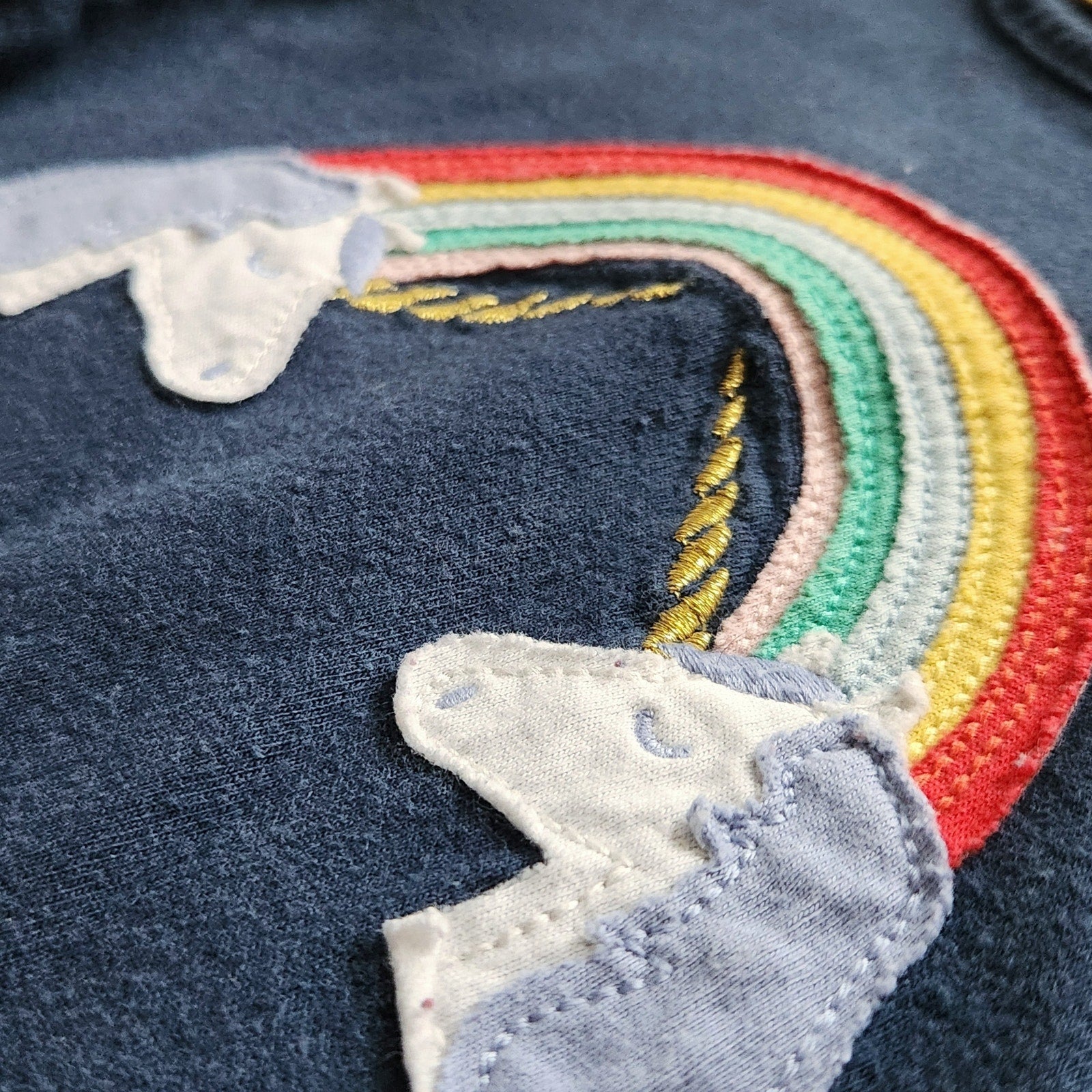 Color: Navy with rainbow & unicorn appliqué + embroidered stars