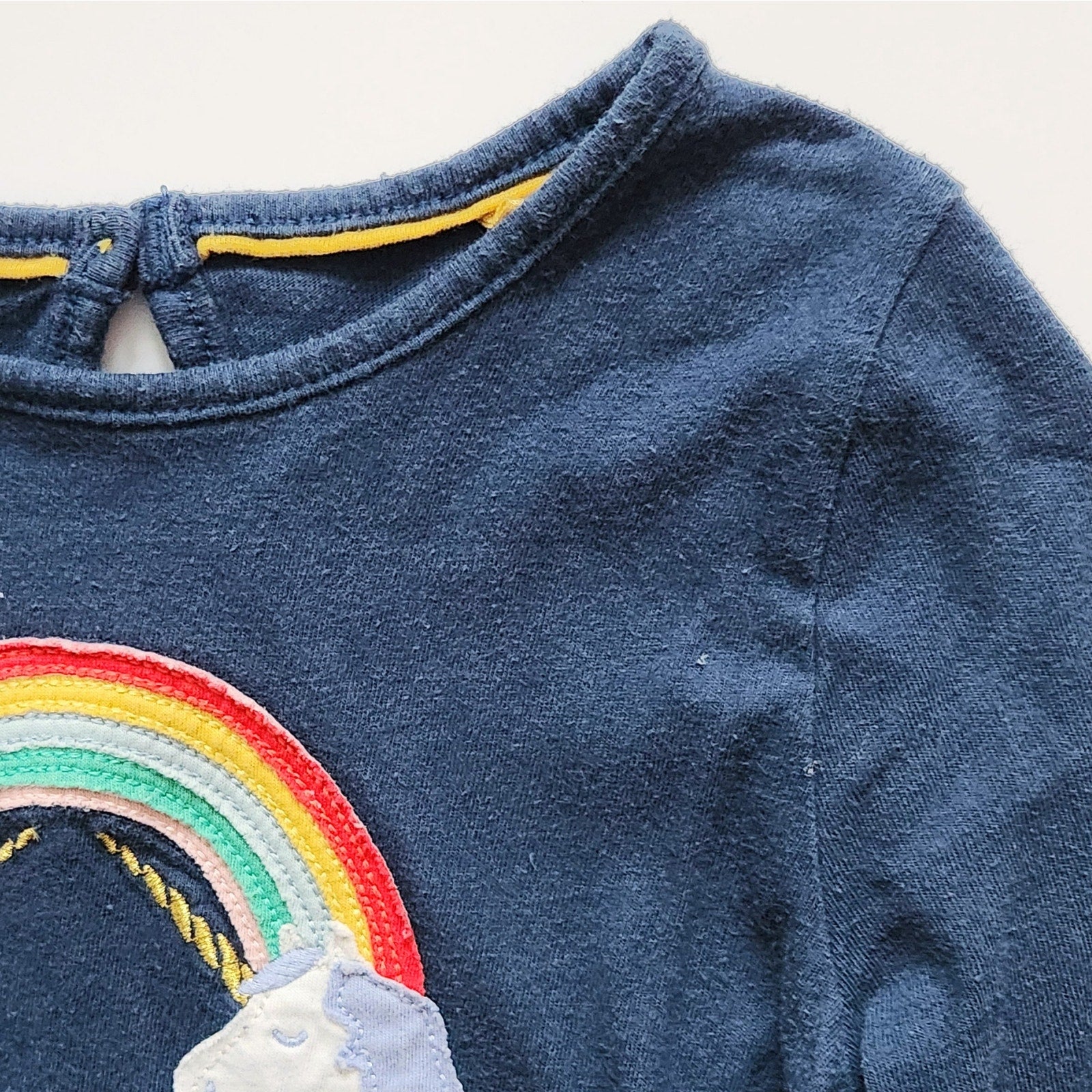 Mini Boden Navy Rainbow Unicorn Appliqué Dress | Girls Size 7-8 (128 cm) | Long Sleeve Tiered Twirl Dress