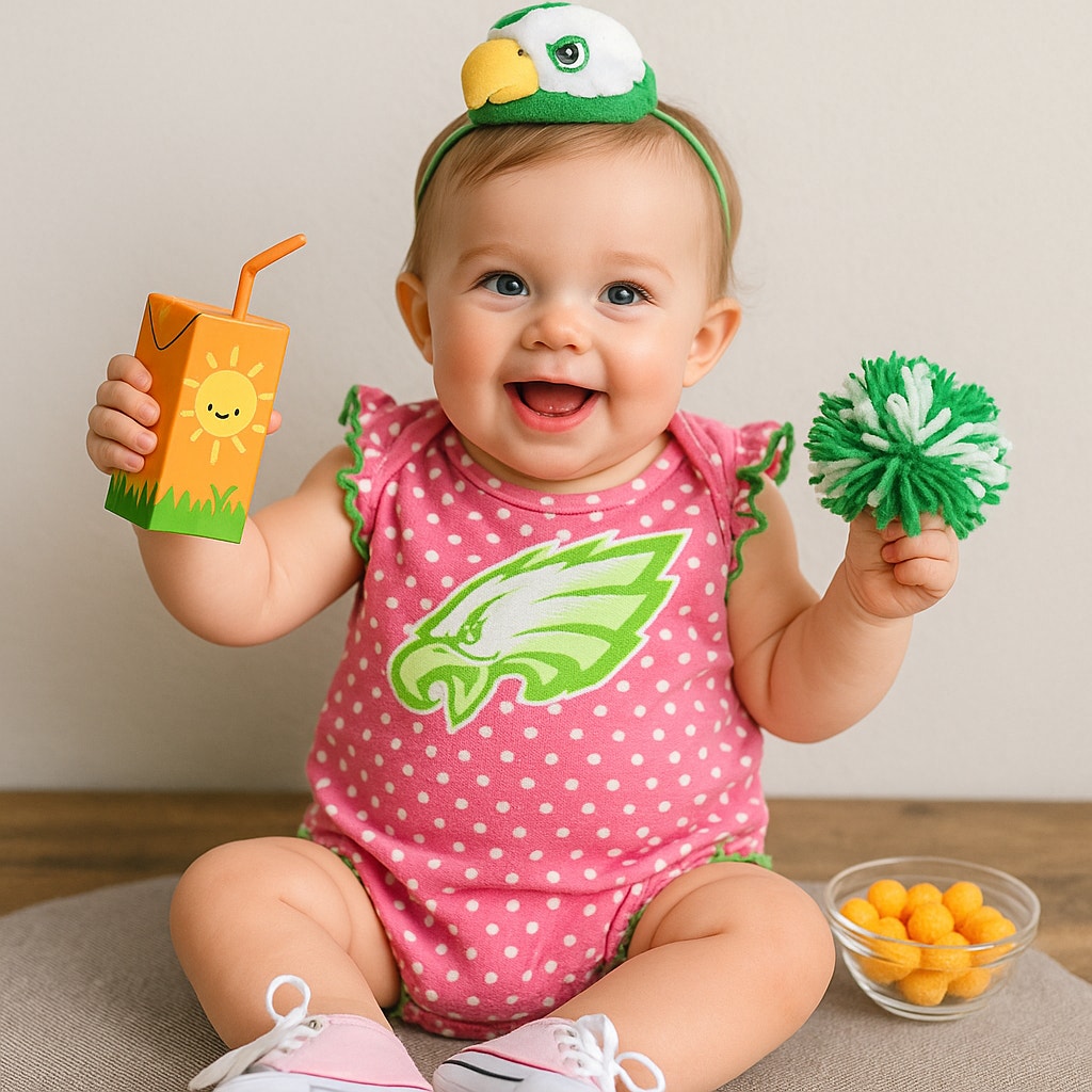 #PhiladelphiaEagles #EaglesBaby #NFLBabyClothes #SportsBaby #EaglesNation #BabyGirlStyle #PolkaDots #GameDayOutfit #BabyShowerGift #FootballBaby girl girly girlhood girlhoodcore spring summer fall autumn preppy hypoallergenic eczema friendly football sports baby infant