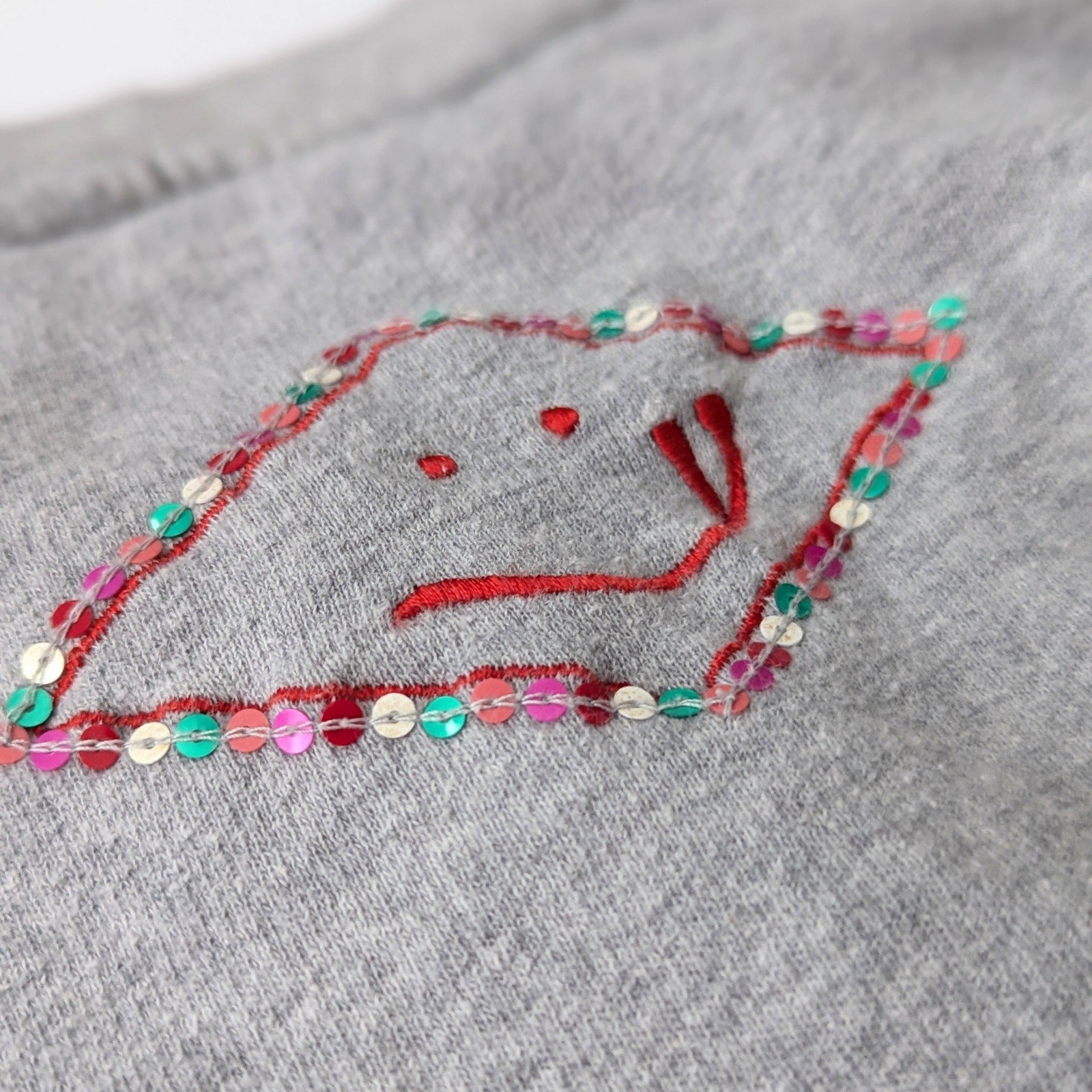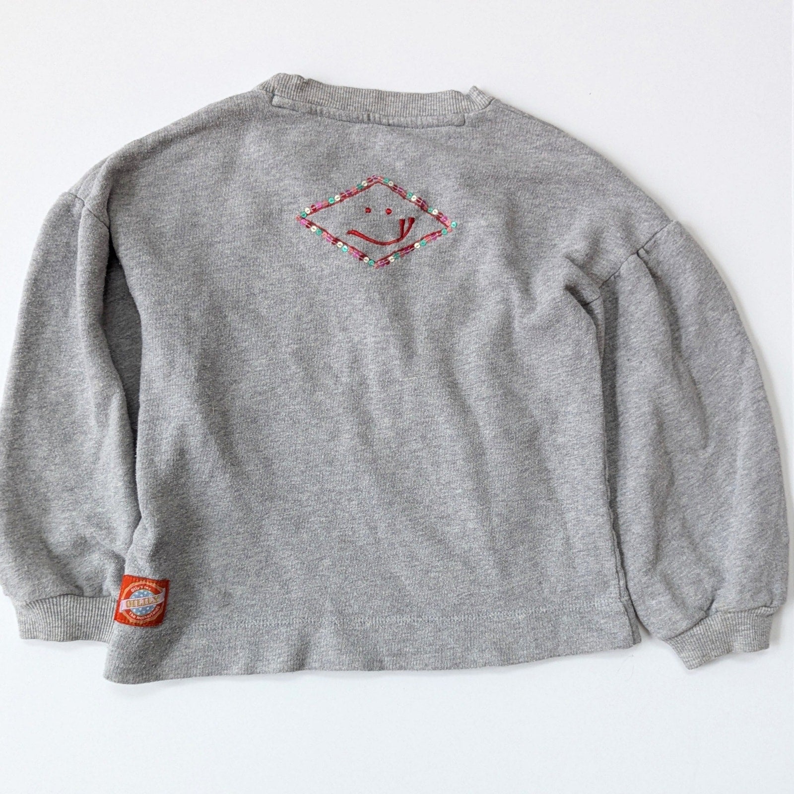 Oilily Believe Sweater Gray Crewneck Girls Size 7 | 122cm Sequins & Embroidery Puff Sleeve Cotton