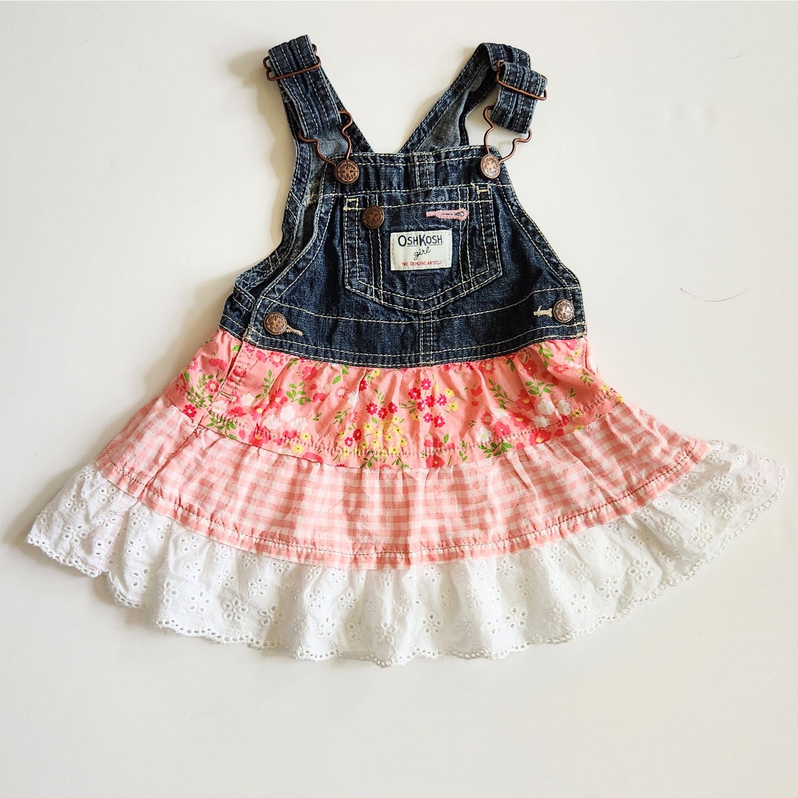 Oshkosh B'Gosh Girl s Pink Floral Gingham Eyelet Skirted Overalls