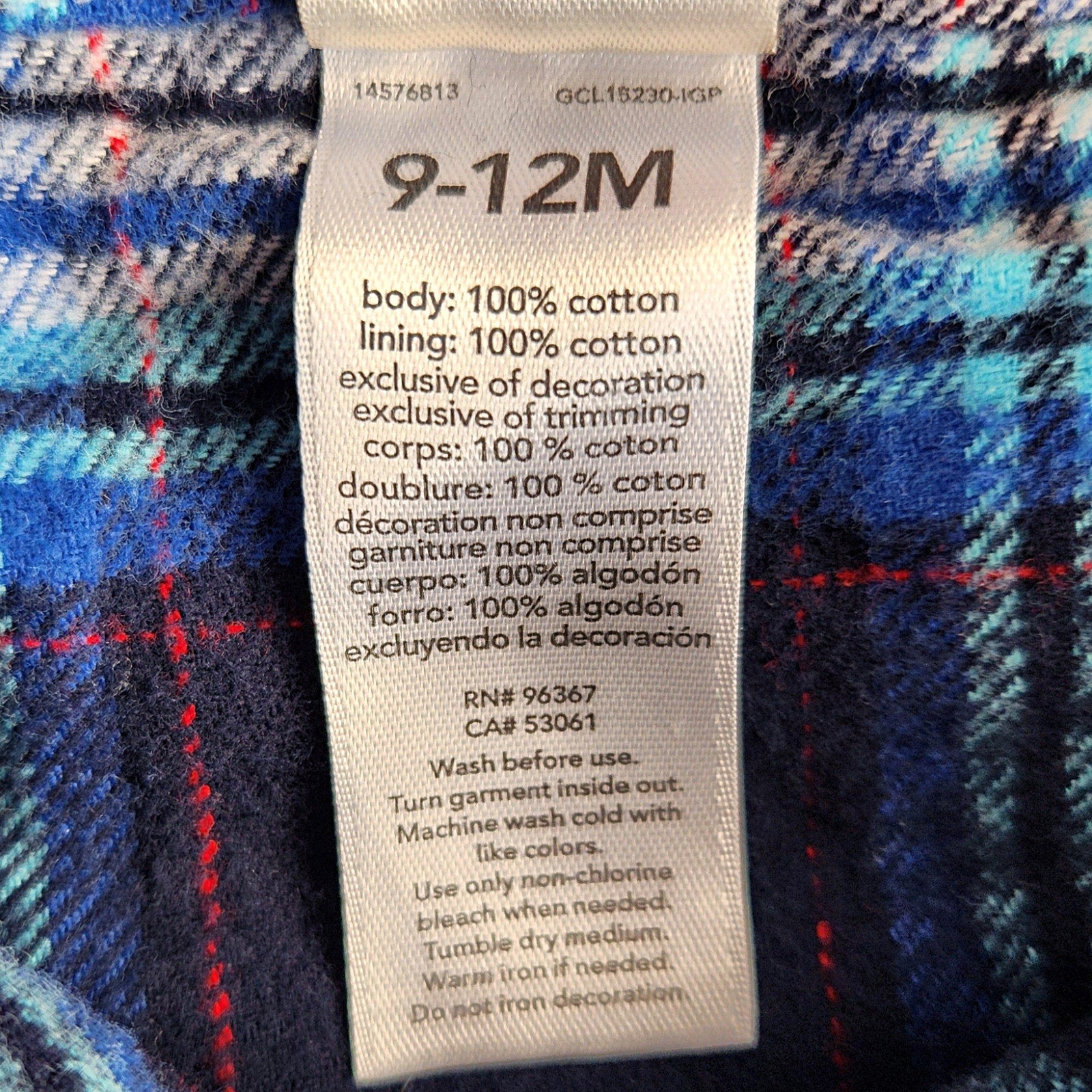 Oshkosh B'gosh Navy Blue Corduroy Overalls Plaid Flannel Lined Size 9-12 months