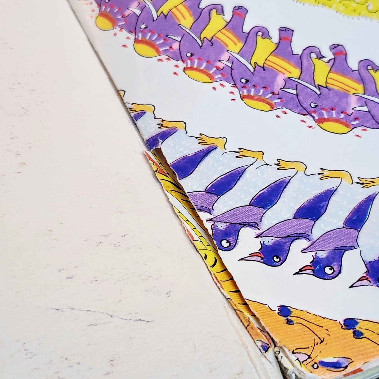 This rare children’s counting book features stunning illustrations by Demi, blending bold colors and imaginative patterns. Perfect for teaching little ones numbers through playful, detailed animal drawings. The visual style is captivating not only for children but also for collectors of vintage children’s books.