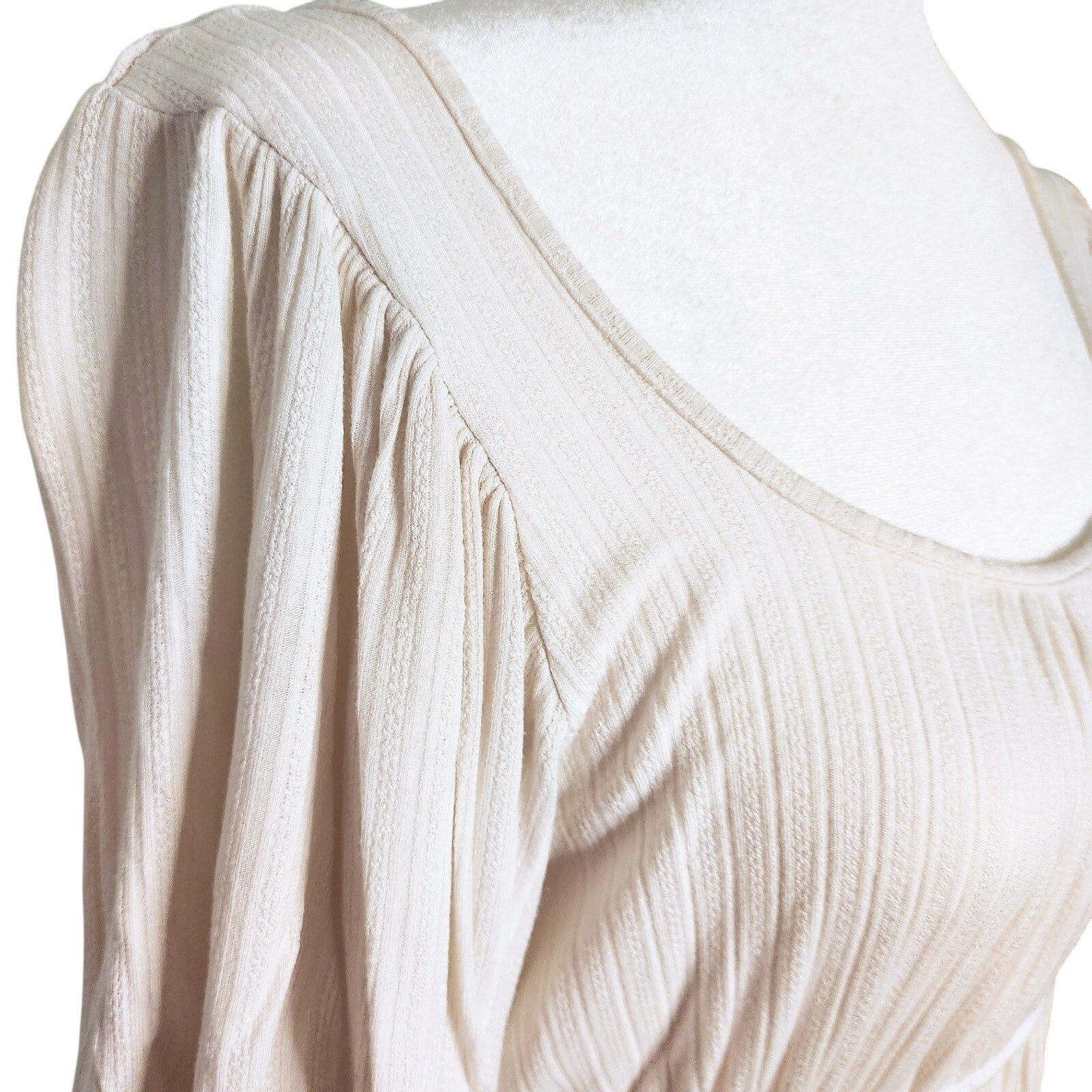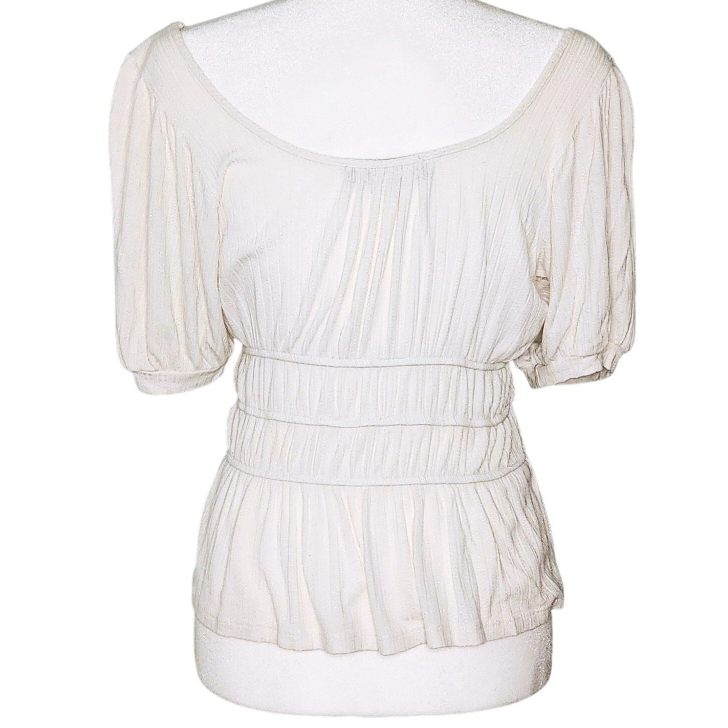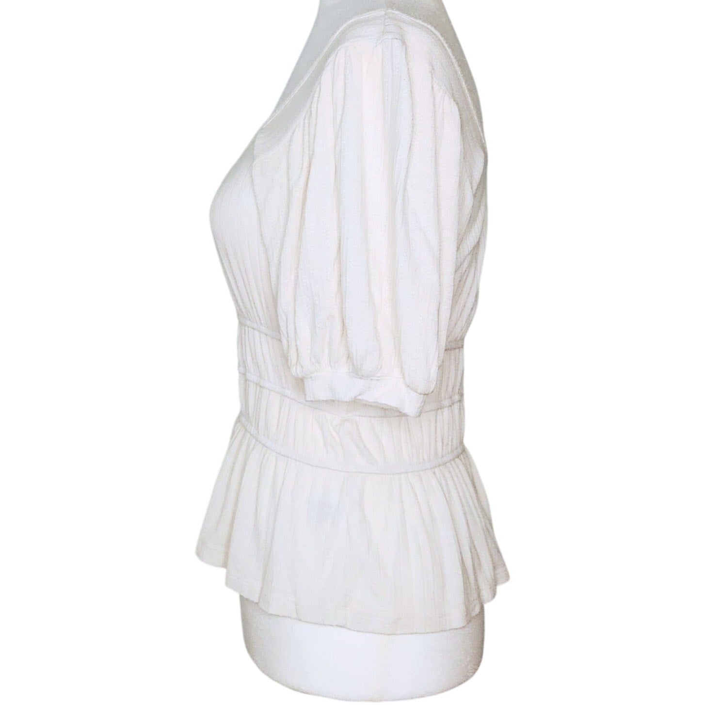 Slate & Willow White Smocked Peplum Top Puff Sleeve Rayon Scoop Neck Blouse | Women's Size M