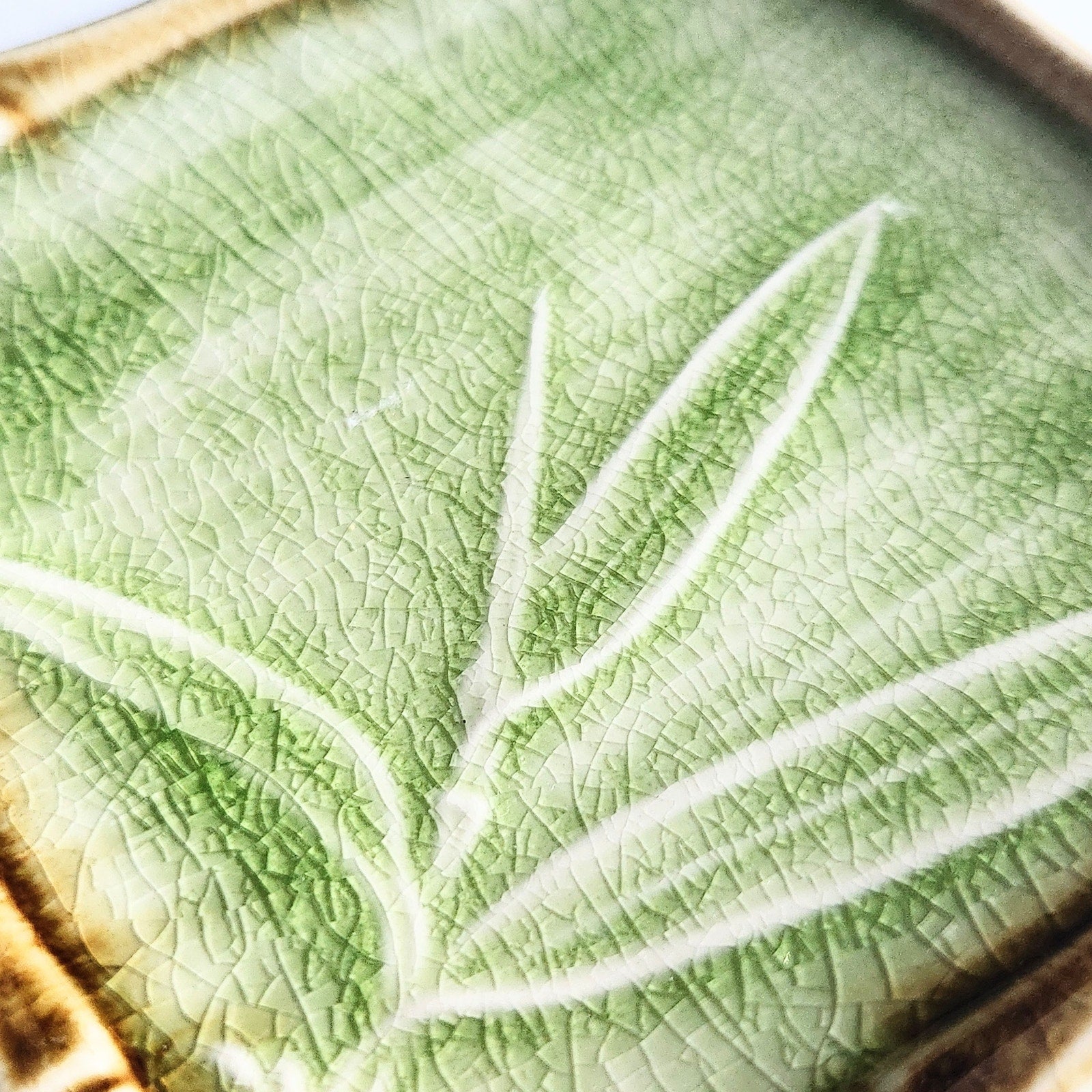 Japanese Bamboo Grass Green Crackle Glaze Square Dishes