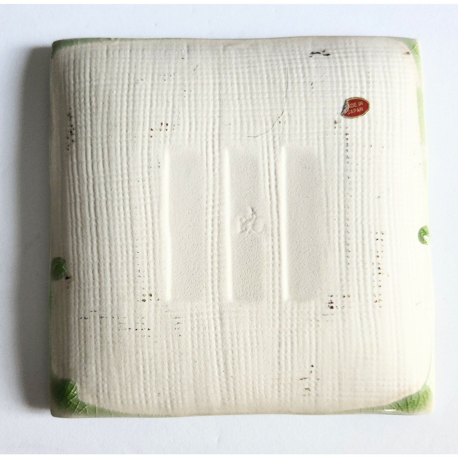 Elegant and timeless, these Smithsonian Japanese square ceramic dishes feature a green crackle-glazed center with embossed bamboo grass detail, framed by a rich brown bamboo-style edging. Crafted from high-quality porcelain with a maker’s mark on the back, these pieces are both functional and decorative.