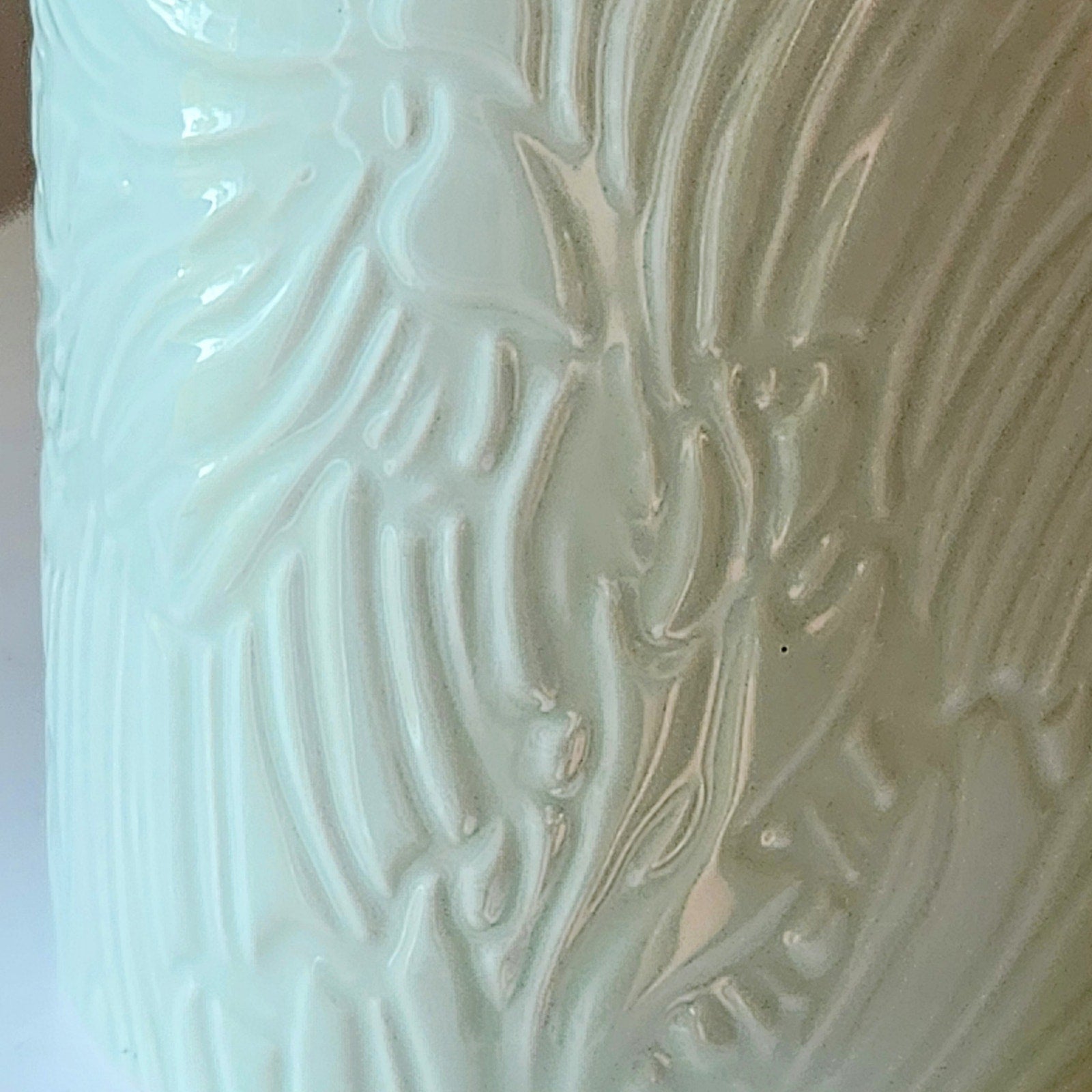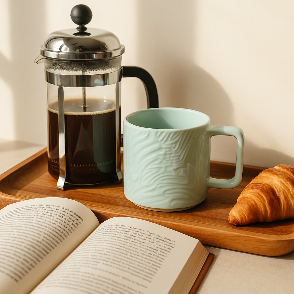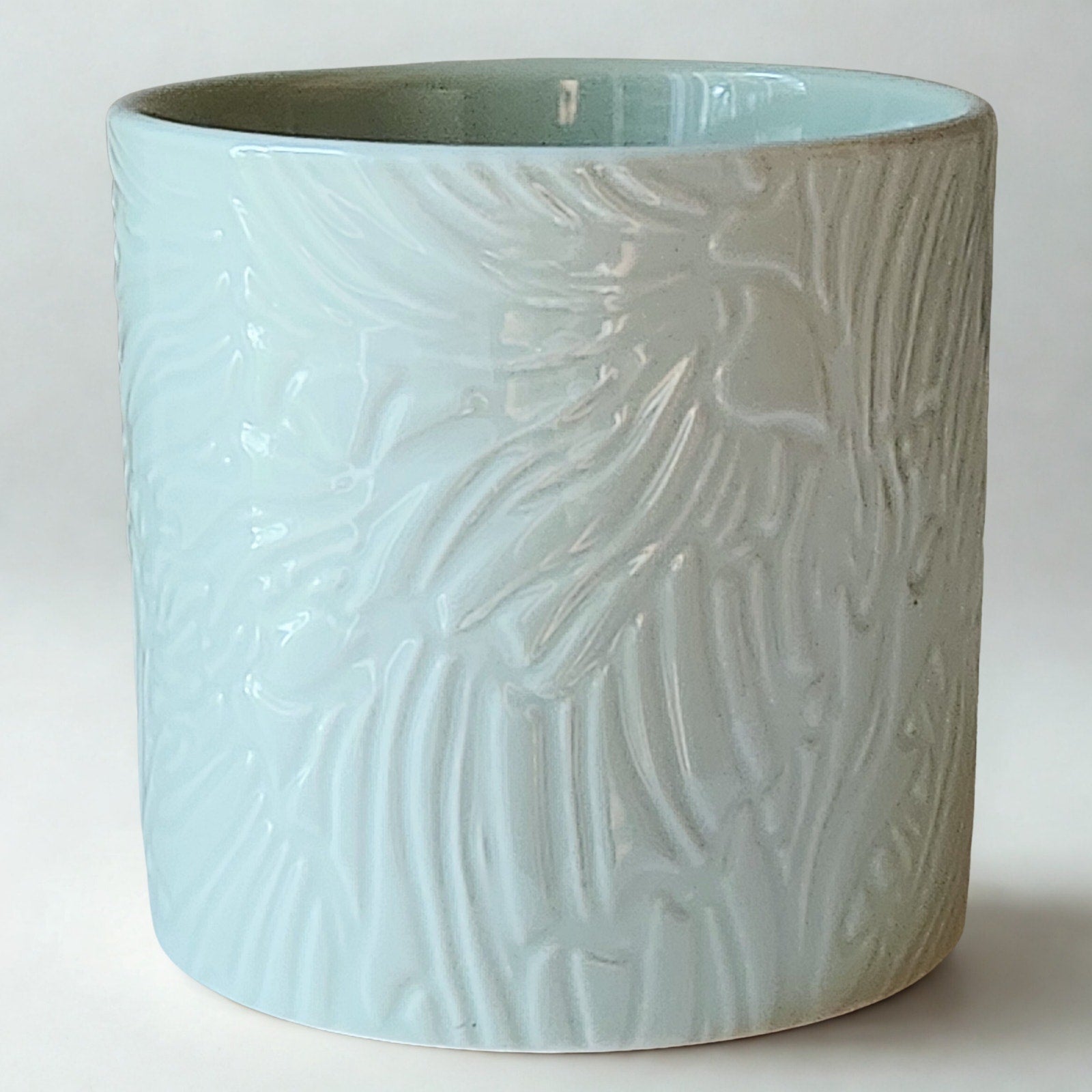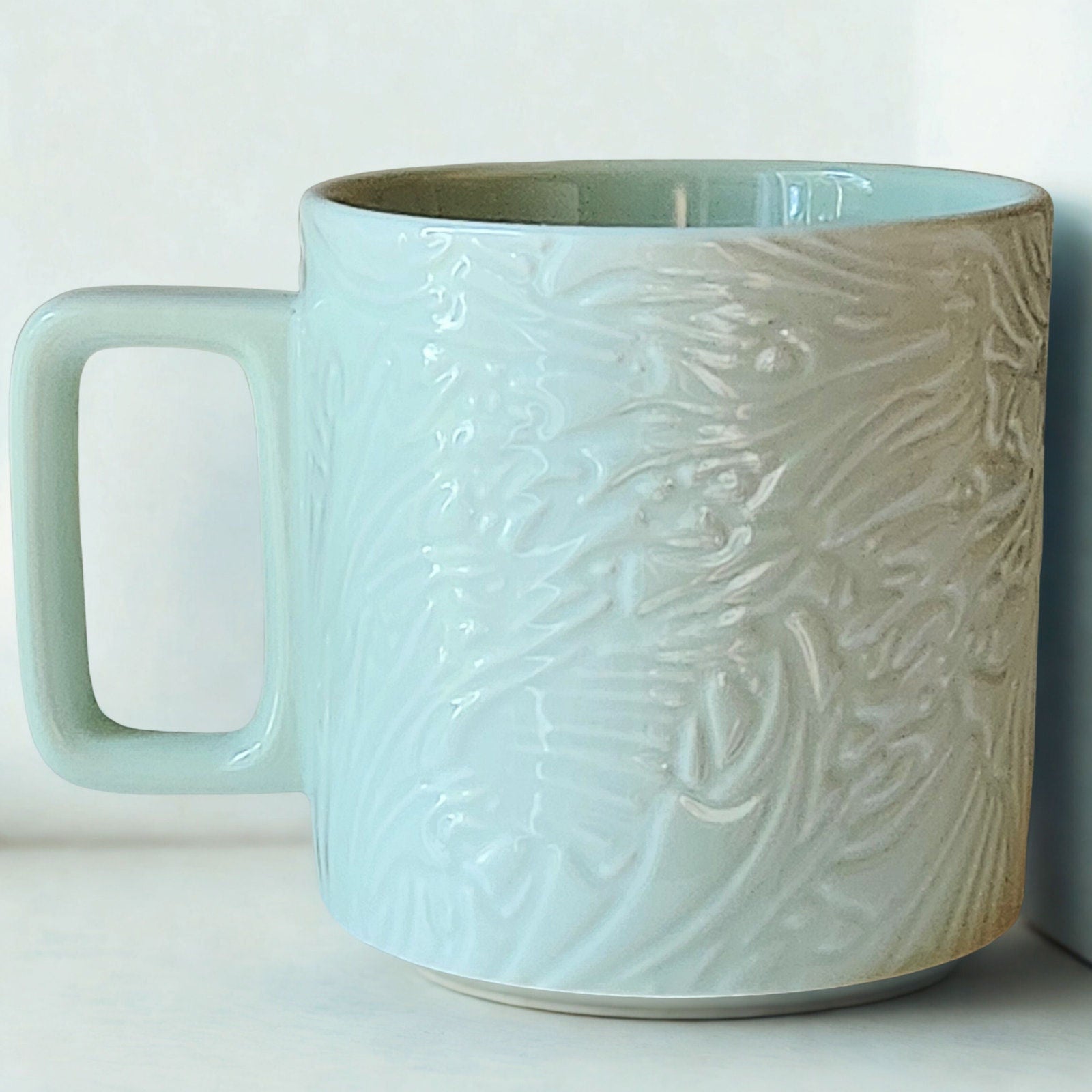 Bring a touch of modern elegance to your morning ritual with this beautifully crafted ceramic mug. Featuring a soft pastel mint glaze and a unique embossed texture that adds visual depth and tactile charm, this mug blends artistry and function seamlessly. The contemporary square handle provides a comfortable grip, making it perfect for your daily coffee, tea, or cozy cocoa moments.