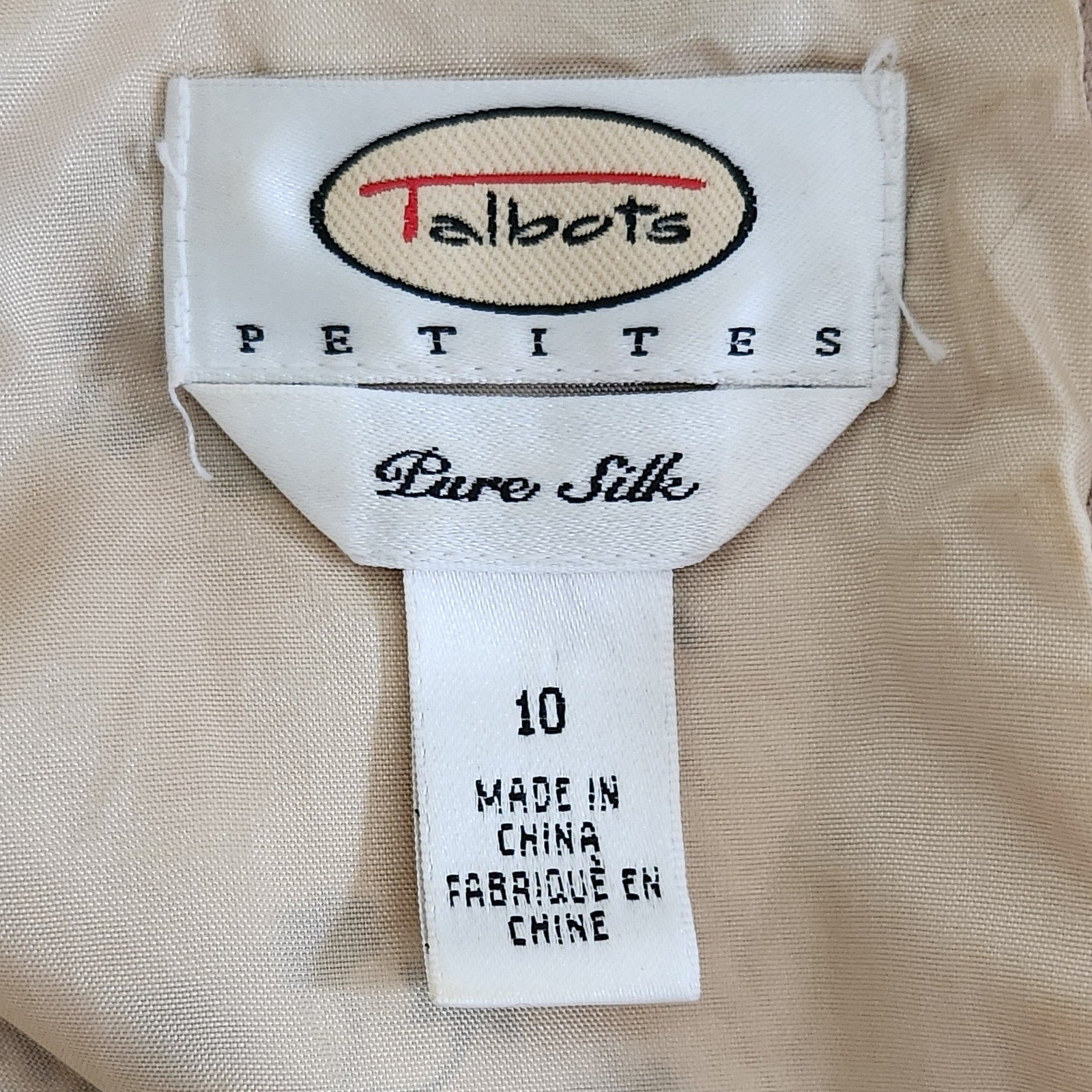 Talbots 100% Silk Sheath Dress – Asian Motif Beige & Black Women's Size 10
