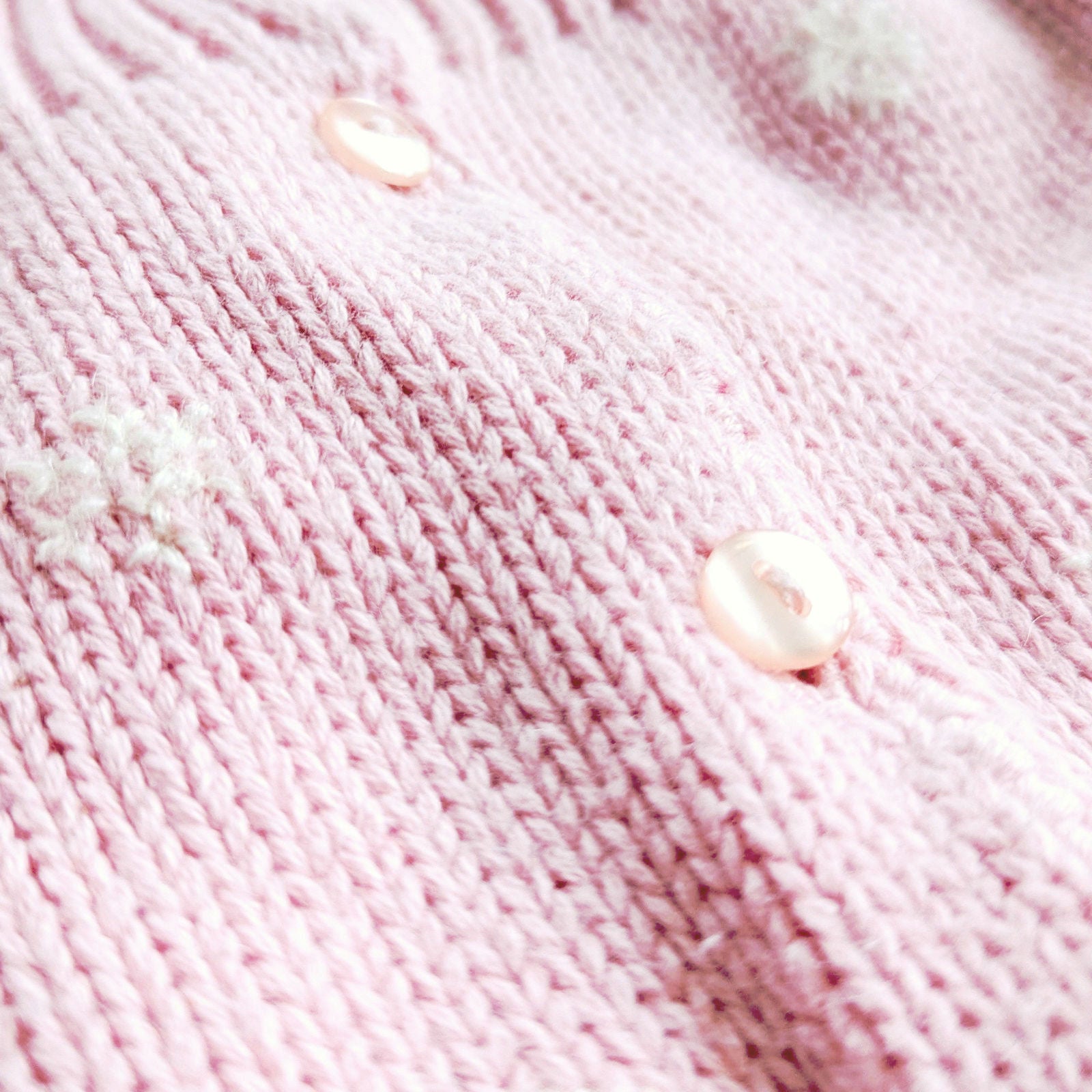 Talbots Kids Vintage 1990s Baby Girl Winter Cardigan | Pink Cotton Knit Sweater with Snowman Appliques | Puff Sleeves 12M | Eczema-Friendly